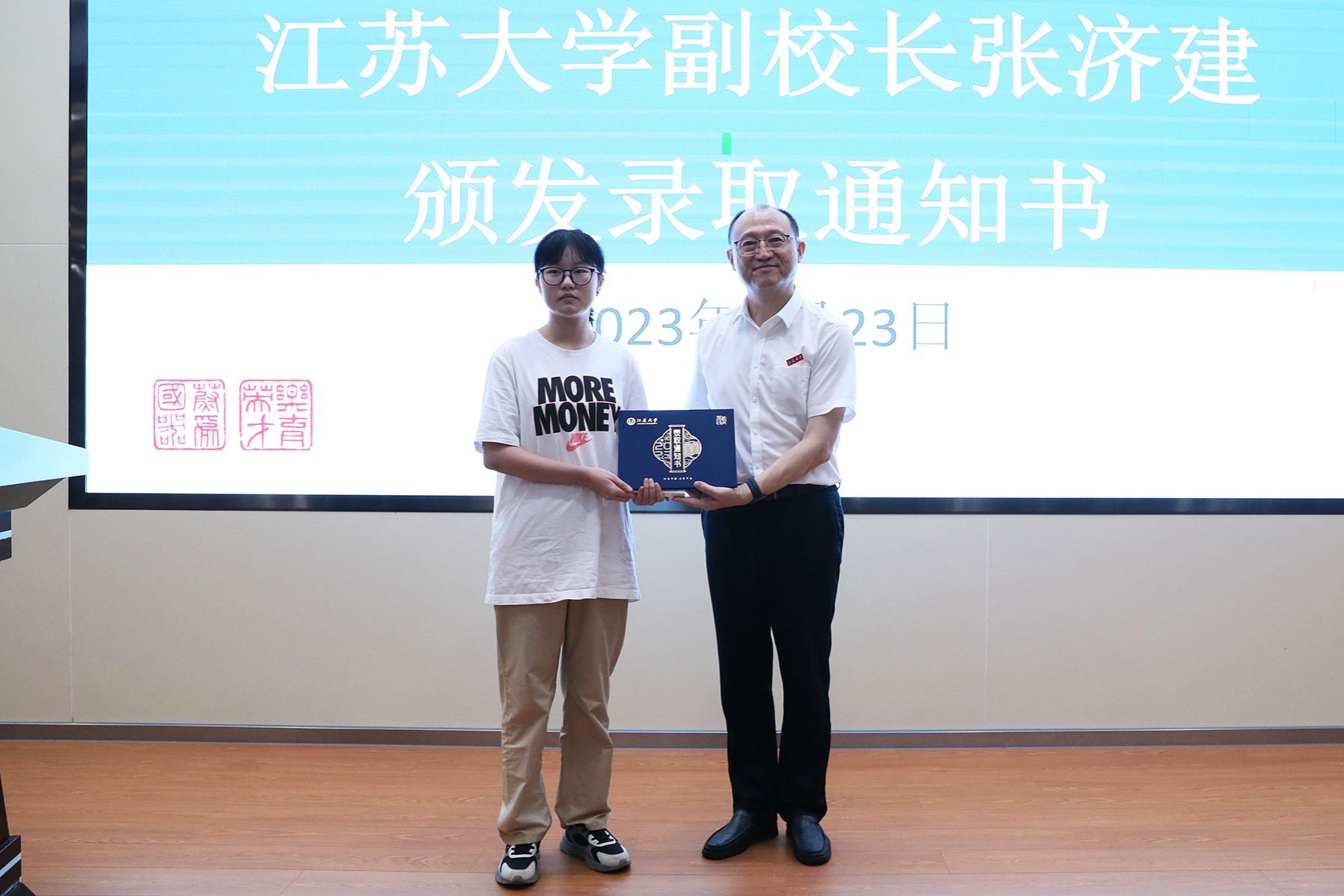 25日上午,邢卫红来到江苏省镇江第一中学发放录取通知书,为41名od体育全站(中国)有限公司2023级新生发放录取通知书。