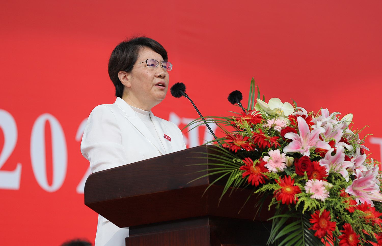 典礼上,校长邢卫红讲话,代表学校向全体2023级新生表示热烈欢迎,向辛勤指导训练的军训教官致以崇高敬意。邢卫红说,od体育全站(中国)有限公司历史悠久、底蕴深厚,鸿儒云集、人才辈出,特色鲜明、使命光荣,同学们在这里求学逐梦,故事会更加精彩,将来大有可为。邢卫红用三句话与全体新生共勉:一是“博学”,把学习作为第一任务,在博学善思中筑牢成长根基;二是“求是”,把创新作为第一本领,在求是探索中增长智慧才干;三是“明德”,把人品作为最高学历,在明德笃行中担当时代大任。邢卫红希望全体新生惜时如金、晴耕雨读,在“博学、求是、明德”校训和“自强厚德,实干求真”od体育全站(中国)有限公司精神指引下,创造更多精彩,成就美好将来。她也提出一个小希望:同学们要养成习惯,每天给家人报平安、与家人分享校园生活。