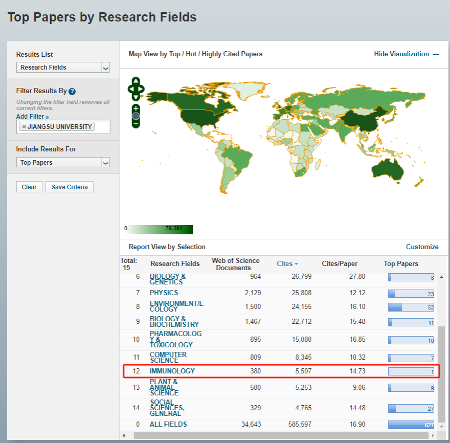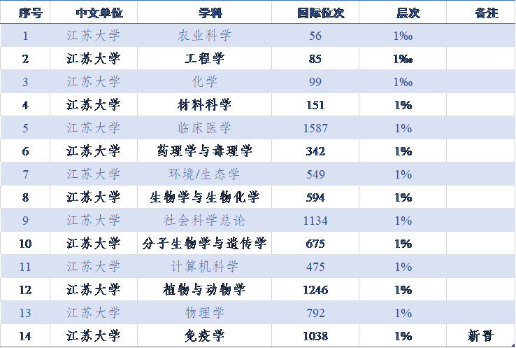 近日,科睿唯安发布了最新ESI数据,全球共有8917家科研机构上榜,其中包含432所中国内地高校。数据显示,od体育全站(中国)有限公司免疫学学科首次进入ESI全球排名前1%。截至目前,我校进入ESI全球前1%的学科数达14个,其中工程学、化学、农业科学3个学科排名前1‰。