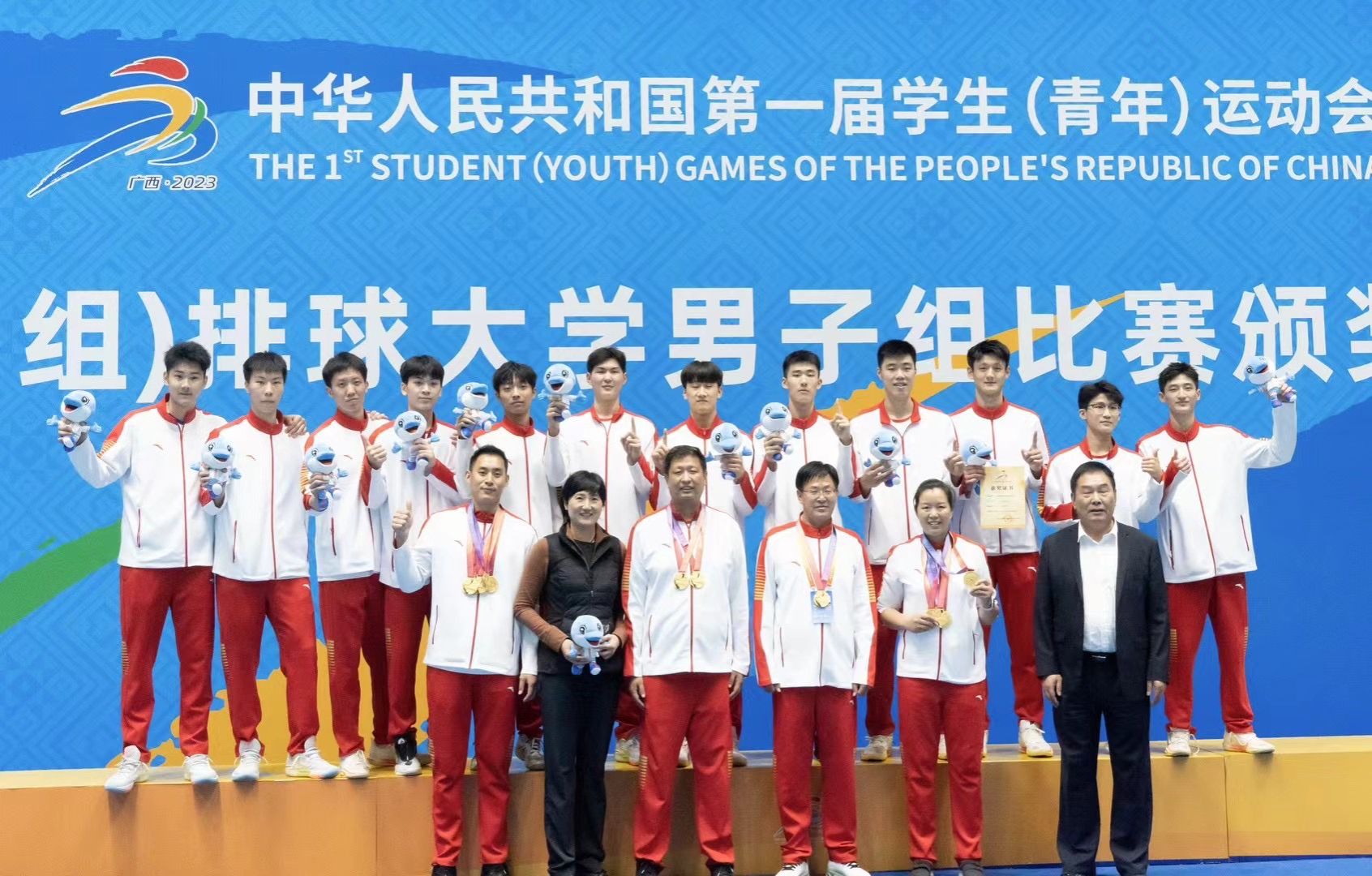 11月8日至15日,第一届全国学生(青年)运动会(校园组)排球大学男子组决赛在北部湾大学举行,由我校牵头组建的江苏队夺得冠军,取得近年来江苏省大学生排球比赛历史最佳成绩。