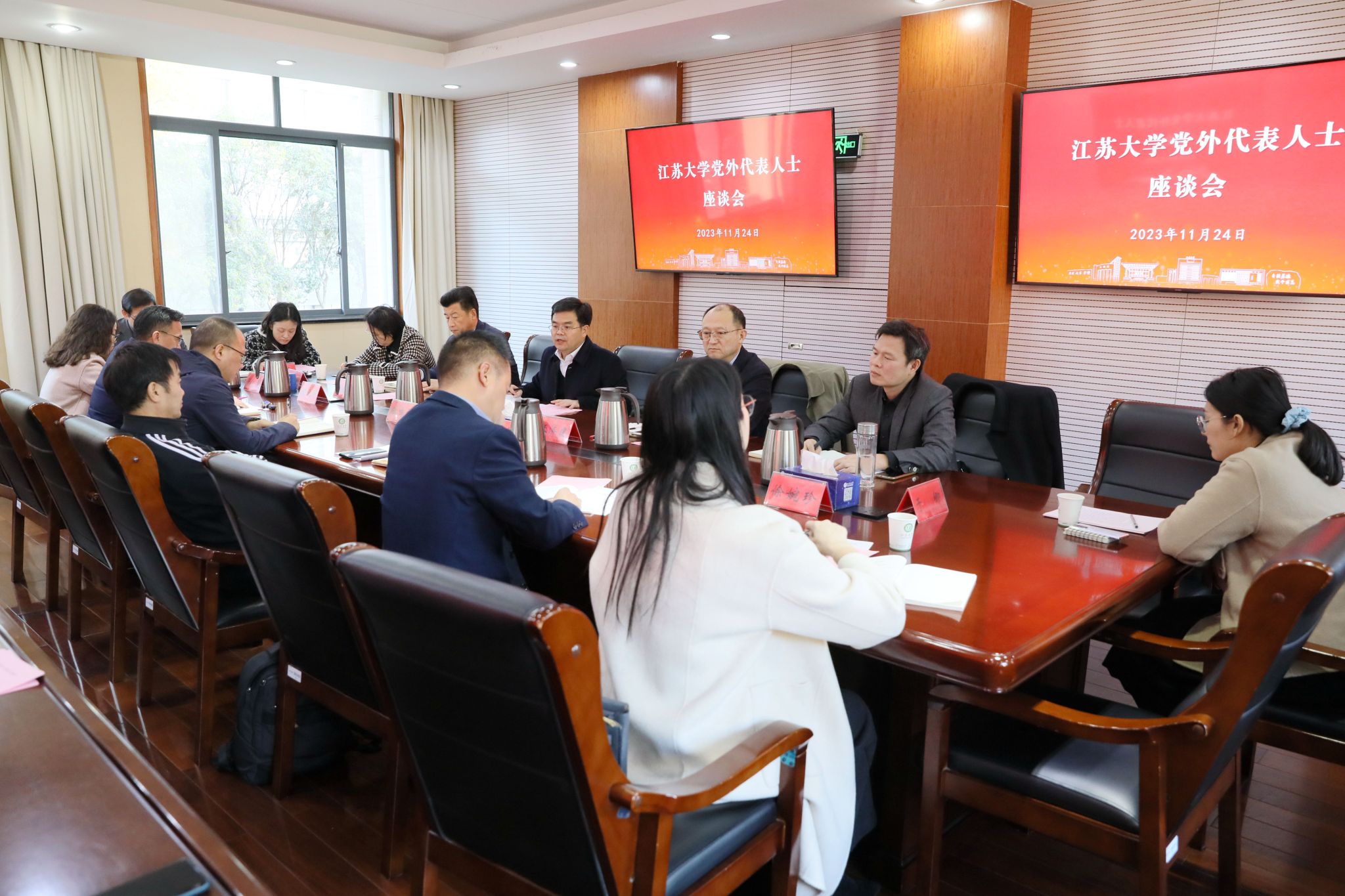 11月24日,学校在行政一号楼201会议室召开党外代表人士座谈会。校党委书记李洪波,党委副书记张济建,党委常委、宣传部部长、统战部部长吴麟麟出席会议,会议由张济建主持。