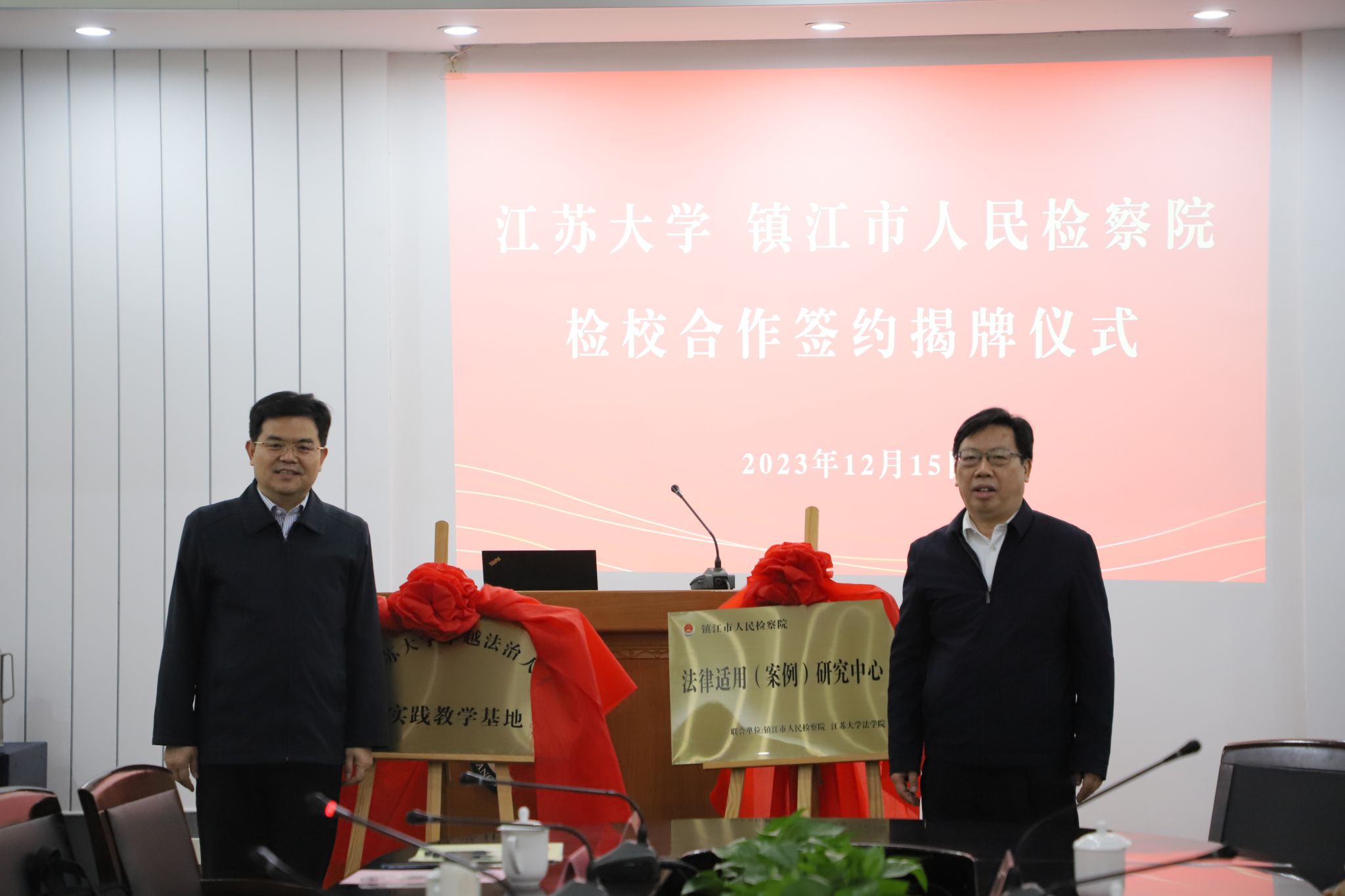 李洪波与潘昌锋共同为“od体育全站(中国)有限公司卓越法治人才实践教学基地”“镇江市人民检察院法律适用(案例)研究中心”揭牌。