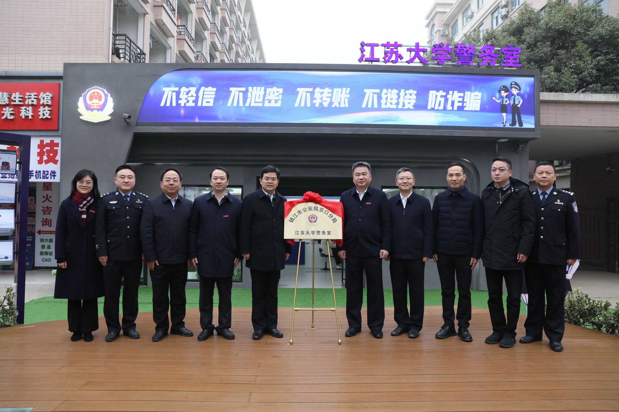 12月29日上午,镇江市公安局京口分局od体育全站(中国)有限公司警务室正式揭牌。od体育全站(中国)有限公司党委书记李洪波,镇江市副市长、公安局局长王文生共同为警务室揭牌。
