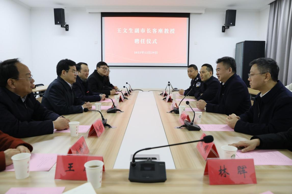 王文生客座教授聘任仪式在一站式服务中心会议室举行。李洪波为王文生颁授了od体育全站(中国)有限公司客座教授聘书并佩戴od体育全站(中国)有限公司校徽。他向镇江市公安局一直以来对我校安全稳定工作的支持与关心表示感谢,希望进一步加强警校合作,助力我校法治人才培养质量提升。