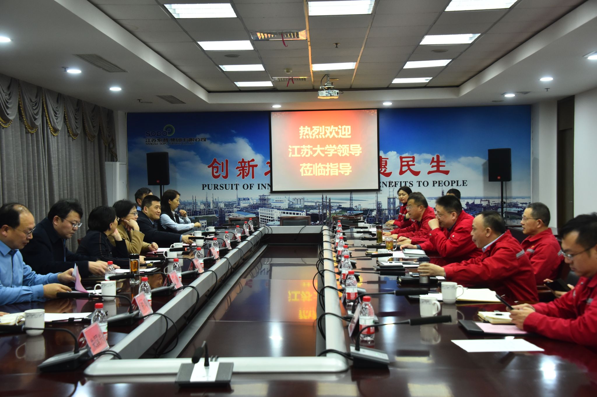 2月28日,校长邢卫红、副校长李红一行赴江苏索普集团开展科技创新交流活动。索普集团党委书记、董事长胡宗贵,党委副书记、总经理邵守言等接见了我校一行。