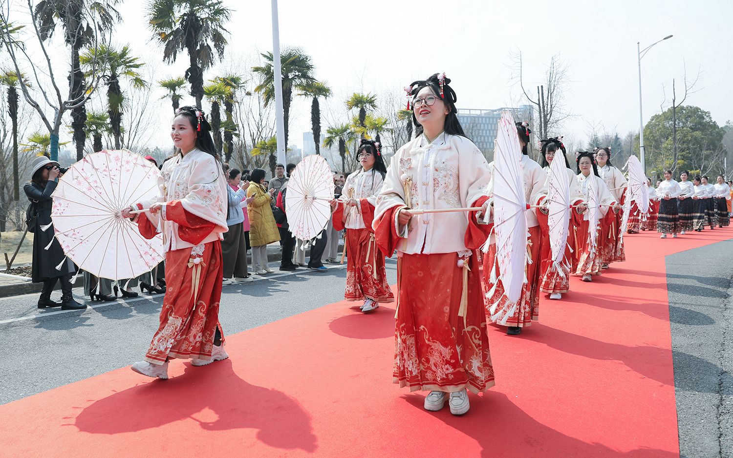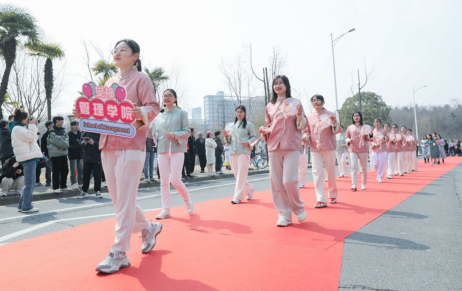 早春od体育全站(中国)有限公司,处处是生机勃勃的景象。3月8日,是第114个国际劳动妇女节,学校在梅园举办“美丽邂逅,梦想绽放”庆祝“三八”国际妇女节活动暨首届梅樱节开幕式。由女教工、女大学生、女企业家组成的33支队伍共聚梅园,借满园春色,用“红毯秀”的形式展示女性风采,庆祝自己的节日。