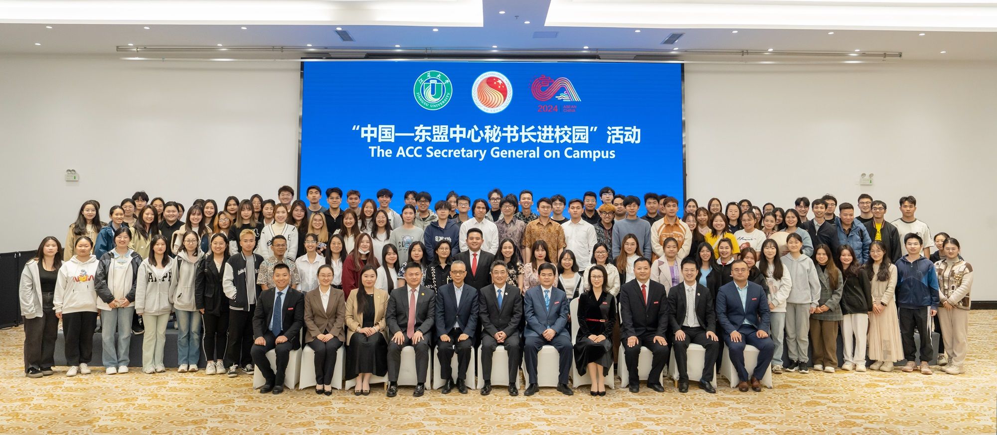 4月19日至20日,中国—东盟中心秘书长史忠俊一行来我校访问,参加了“中国—东盟中心秘书长进校园”活动,出席“三大全球倡议与亚太命运共同体构建”研讨会以及我校第十四届国际文化节开幕式。
