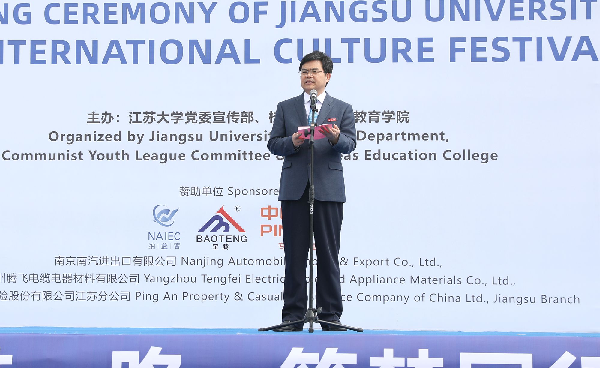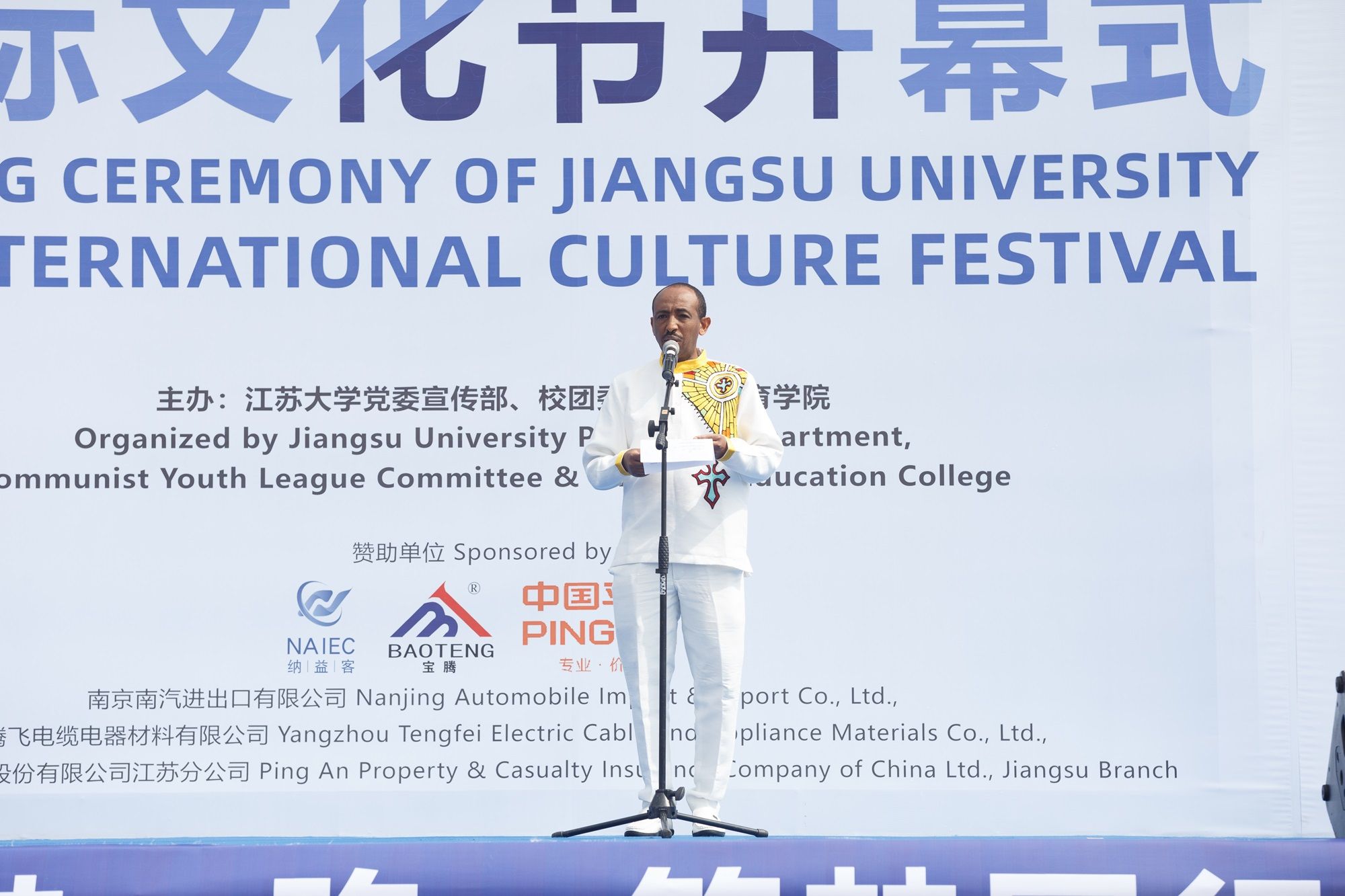 中国—东盟中心秘书长史忠俊,校党委书记李洪波,校党委常委、副校长蔡英凤,校党委常委、宣传部部长、统战部部长吴麟麟,印度尼西亚共和国驻上海总领事馆总领事贝良托·西通吉尔,埃塞俄比亚联邦民主共和国驻华大使馆公使衔参赞格塔丘,俄罗斯联邦和墨西哥合众国外交官代表,江苏省高教学会外国留学生教育管理研究委员会副理事长兼秘书长张海军,镇江市相关政府部门代表,南京南汽进出口有限公司总经理徐启仁、扬州腾飞电缆电器材料有限公司董事长张云等企业家代表以及我校相关部门主要负责人出席开幕式。