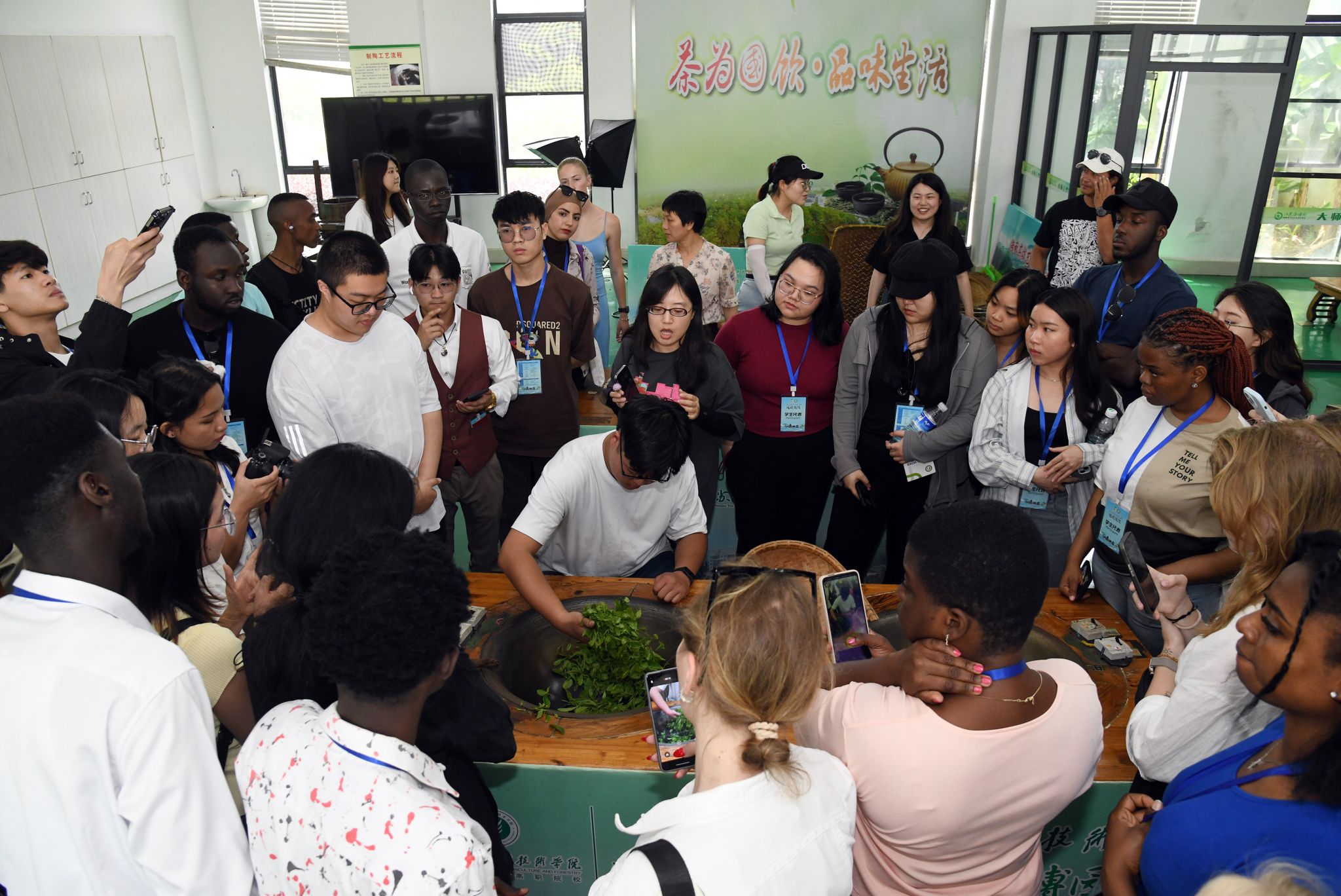 19日上午,我校海外教育学院直属党支部书记王丽敏为留学生讲授茶文化知识,留学生还前往江苏茶博园体验了采茶、制茶、品茶等全过程。