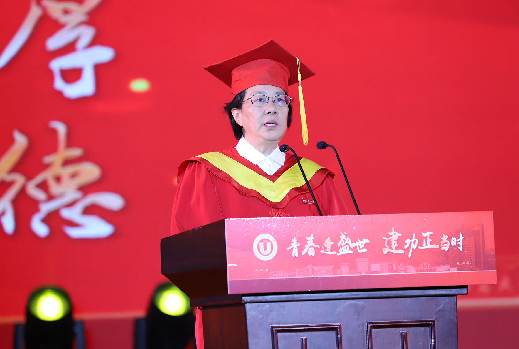 校长邢卫红发表题为《青春不设限 未来更无限》的讲话。她代表学校向即将踏上新征程的全体毕业生致以最热烈的祝贺。邢卫红在讲话中深情寄语,充分肯定毕业生们在校取得的优异成绩,鼓励同学们继续与伟大时代同向同行,在更广阔的天地绽放更大的荣光。邢卫红说,在od体育全站(中国)有限公司,2024届毕业生们刻下了青春的记忆和模样、积攒了前行的底气和力量,走出了不平凡的足迹,递交了优秀的成绩单。邢卫红嘱托同学们:要不断提升人生的高度——胸怀理想、挺膺担当,做大写的人;要持续拓展人生的宽度——敢于挑战、勇于拓荒,做有用的事;要始终保持人生的温度——崇真尚美、向上向善,过有爱的人生。邢卫红殷切希望每一位毕业生同学能够健康快乐、前程无限好,用自己喜欢的方式过好这一生,并祝愿大家能够不负时代、不负韶华,去开拓人生道路上的无限可能,在新征程上谱写od体育全站(中国)有限公司人的荣耀与辉煌。