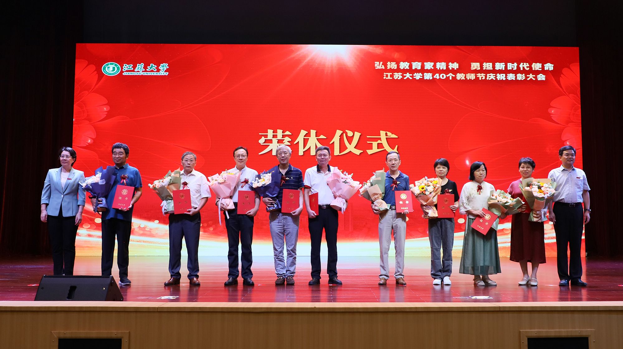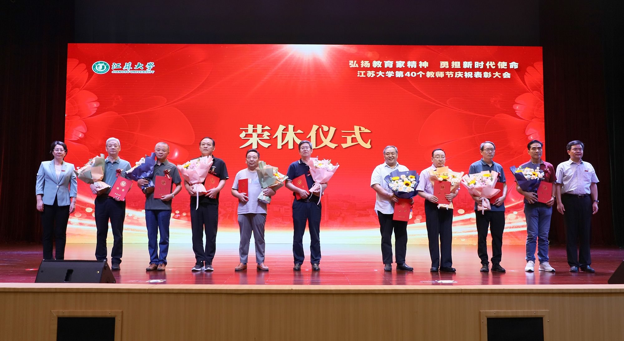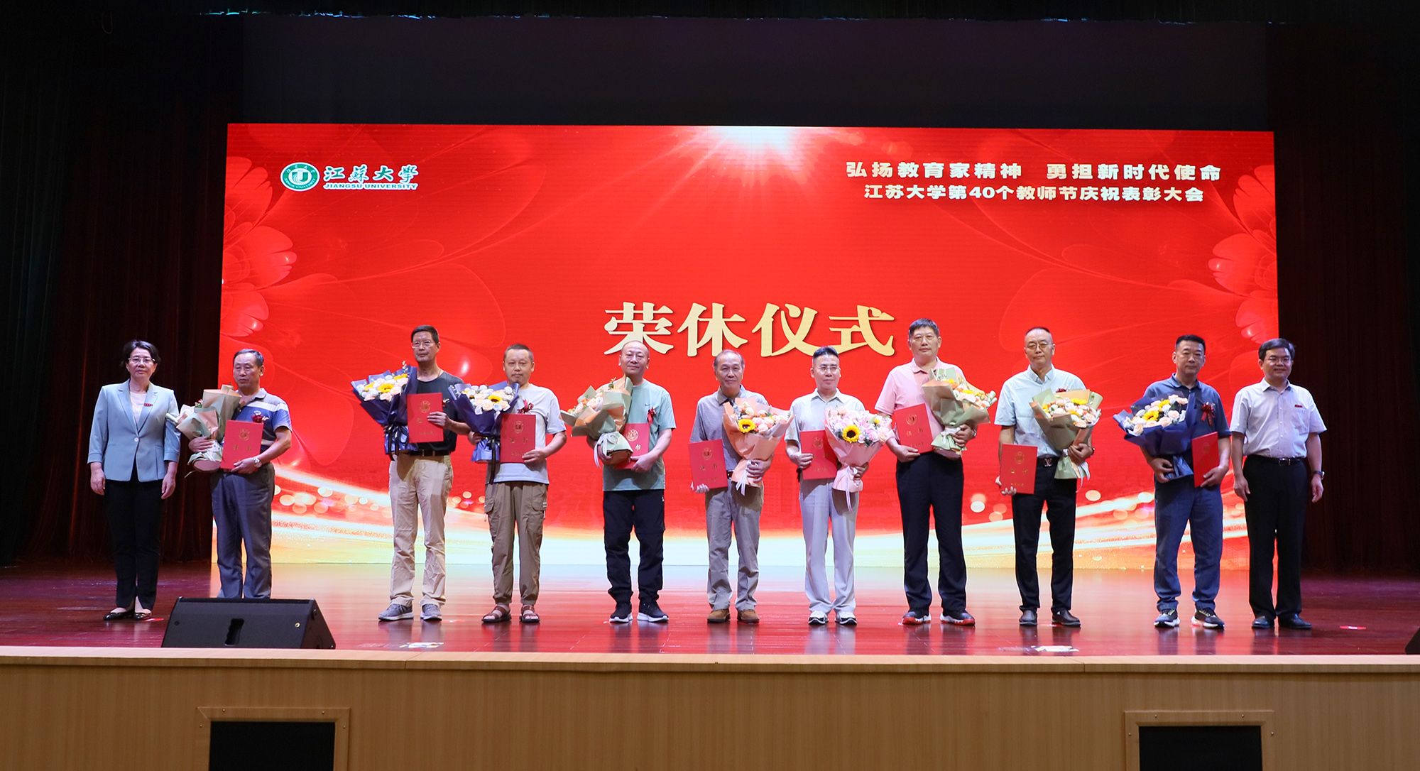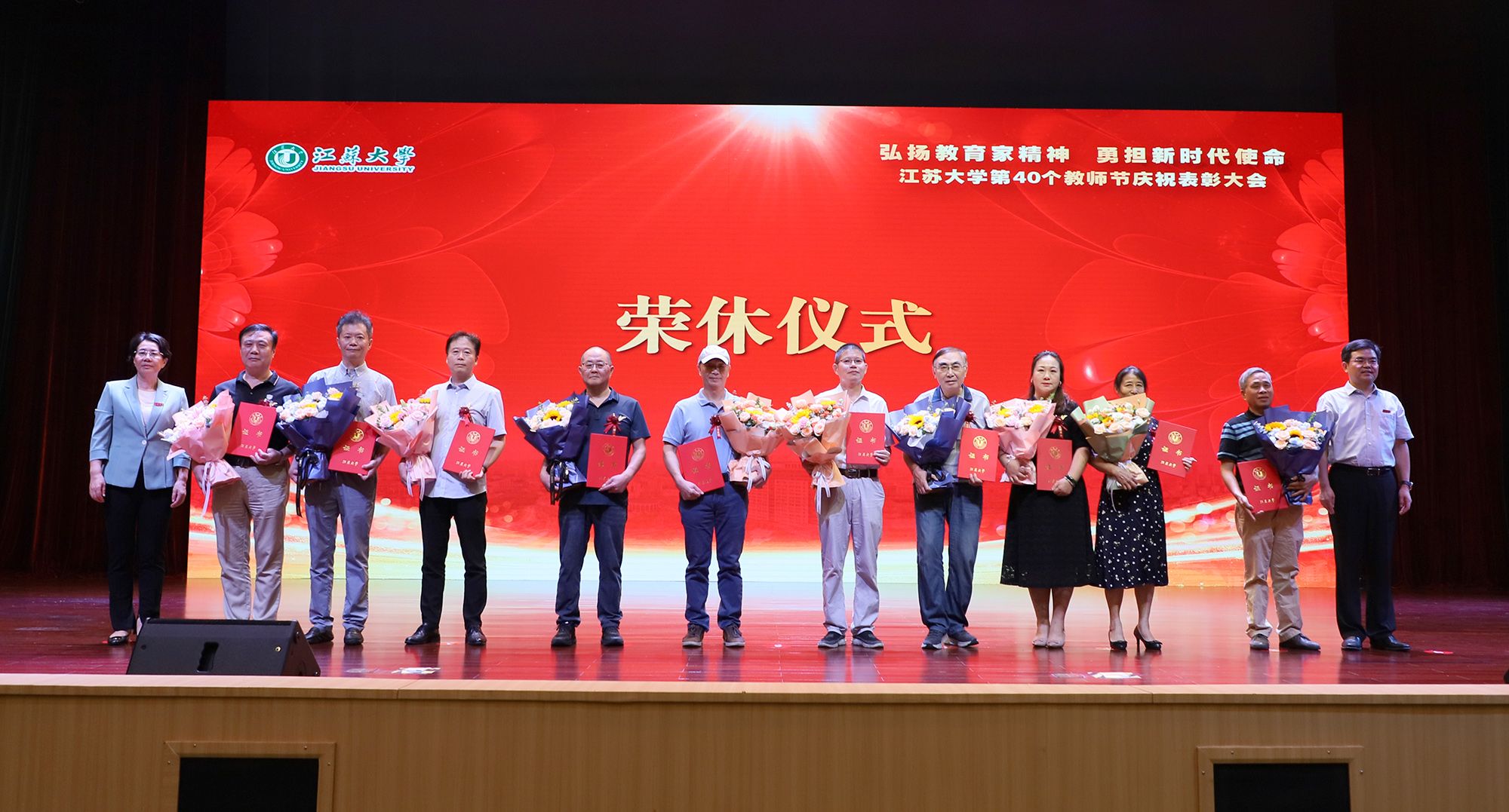 在第一篇章,举行了od体育全站(中国)有限公司2024年荣休仪式,致敬芳华,礼赞荣光。校党委书记李洪波、校长邢卫红为荣休教师代表颁发荣休证书并赠送鲜花。
