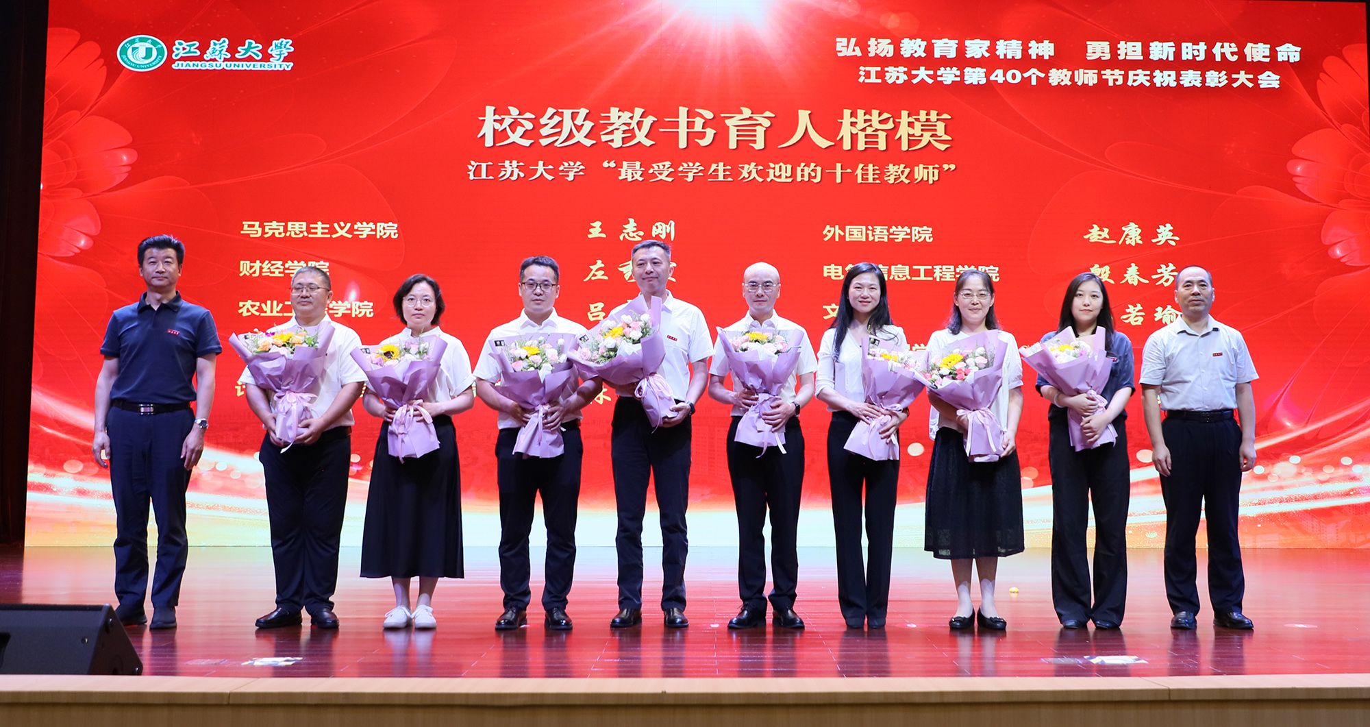校党委常委、组织部部长杨敬江,校党委常委、宣传部部长、统战部部长吴麟麟为od体育全站(中国)有限公司“最受学生欢迎的十佳教师”颁奖。