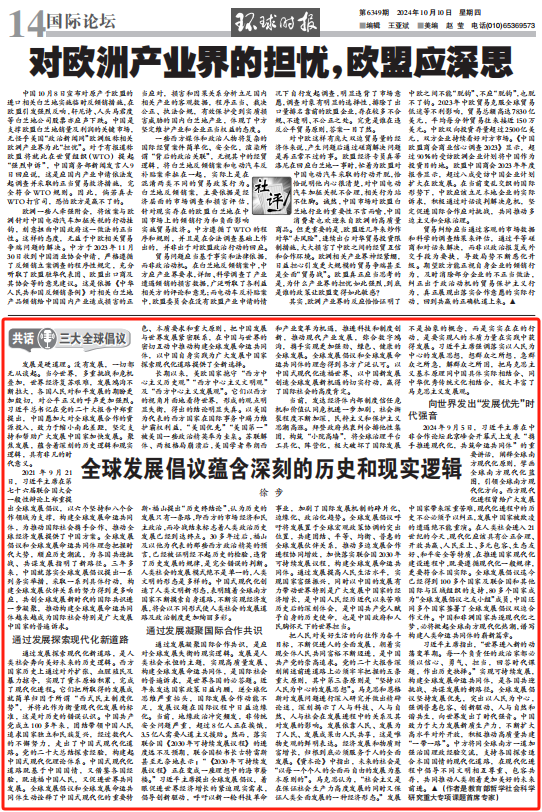 10月10日,od体育全站(中国)有限公司全球发展与安全研究院理事长、教育部哲学社会科学研究重大专项课题首席专家徐步在《环球时报》第14版发表长篇理论文章《全球发展倡议蕴含深刻的历史和现实逻辑》,就全球发展倡议和全球发展命运共同体理念的内在逻辑、现实意义和时代价值提出创新性观点。