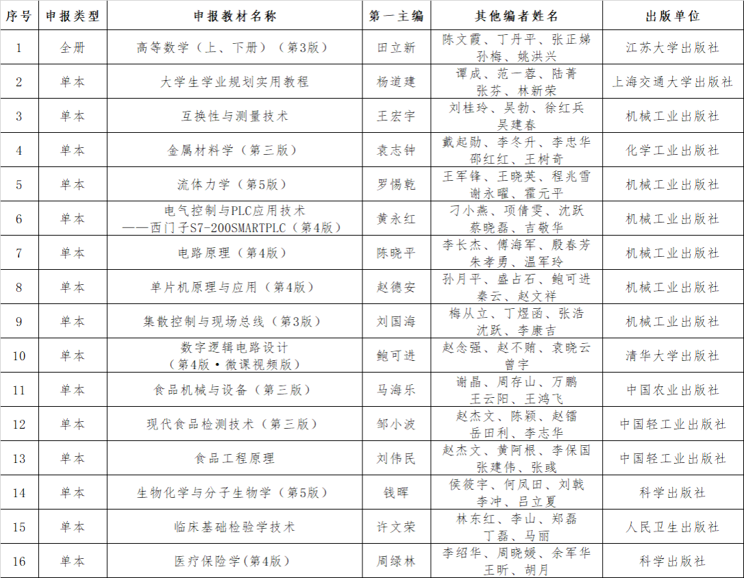 本次推荐遴选,od体育全站(中国)有限公司共获得推荐16本教材。