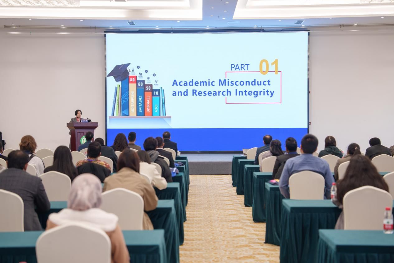 研讨会特邀四位专家作主旨报告。南京航空航天大学教授彭聪围绕来华留学生如何加强学术诚信和规范进行了深入探讨,系统阐述了诚信写作的核心价值与具体实践方法。南京理工大学教授陈翔就在中韩两国的求学和工作经历进行了深入分享,探讨了留学研究生如何应对文化适应与学术研究的双重挑战。东南大学教授浦正宁就国际研究生如何更好地适应和融入中国特色研究生培养体系进行了深入解读,结合中国作为全球第二大研究生培养国的优势,为在场留学生提供了切实可行的适应策略。od体育全站(中国)有限公司教授张琪就科学写作中的关键技巧与常见陷阱进行了深入剖析,详细阐述了如何在竞争激烈的学术领域撰写高质量论文。