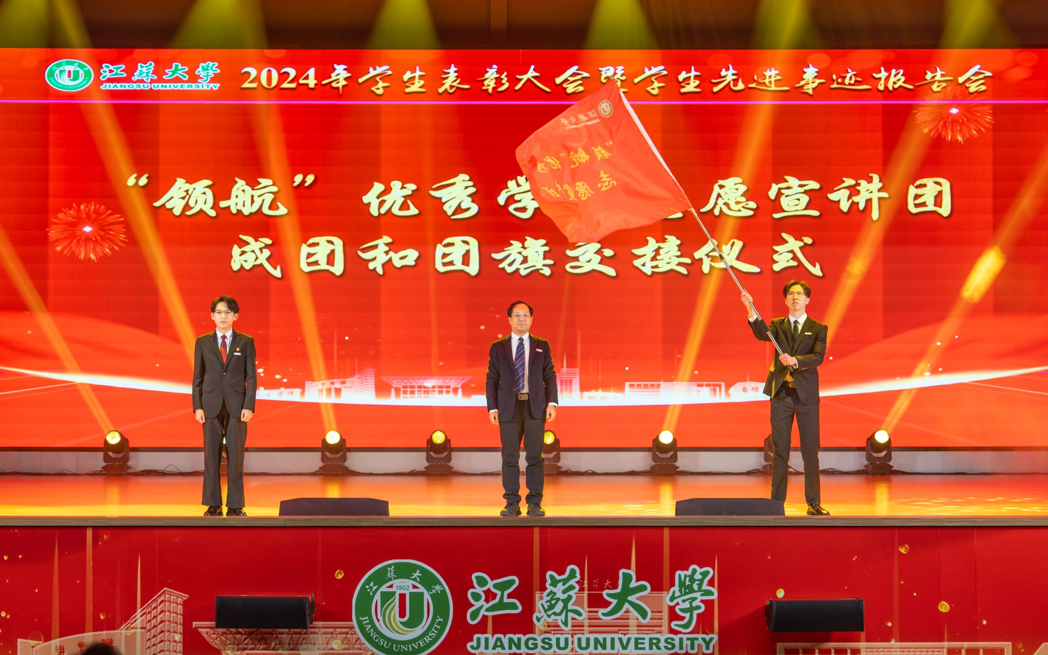 活动上举行了第二届od体育全站(中国)有限公司“领航”优秀学子志愿宣讲团成团和团旗交接仪式,20名优秀学子成为宣讲团成员。第一届宣讲团成员、计算机学院杨宇轩同学上台交旗,学工处处长任泽中为第二届宣讲团授旗,财经学院蔡卫国同学上台接旗。