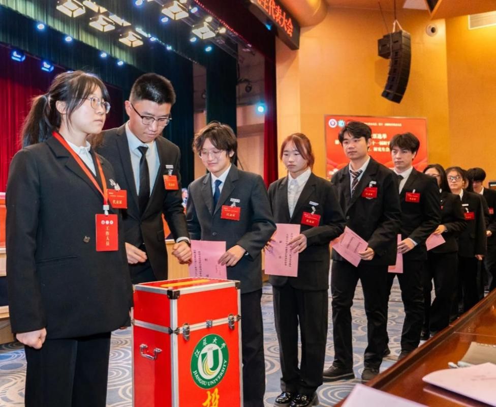 12月15日,od体育全站(中国)有限公司第十二次学生代表大会、第十一次研究生代表大会在小礼堂召开。校党委常委、副校长任旭东,江苏省学生联合会驻会执行主席雍成坤,校党委学生工作部部长任泽中,校团委书记张永强,南京大学学生会主席团成员高子瞻,镇江市学生联合会驻会执行主席刘英胜,校团委副书记刘丹以及各二级团组织负责人等出席大会,371名学代会、研代会正式代表参加大会。