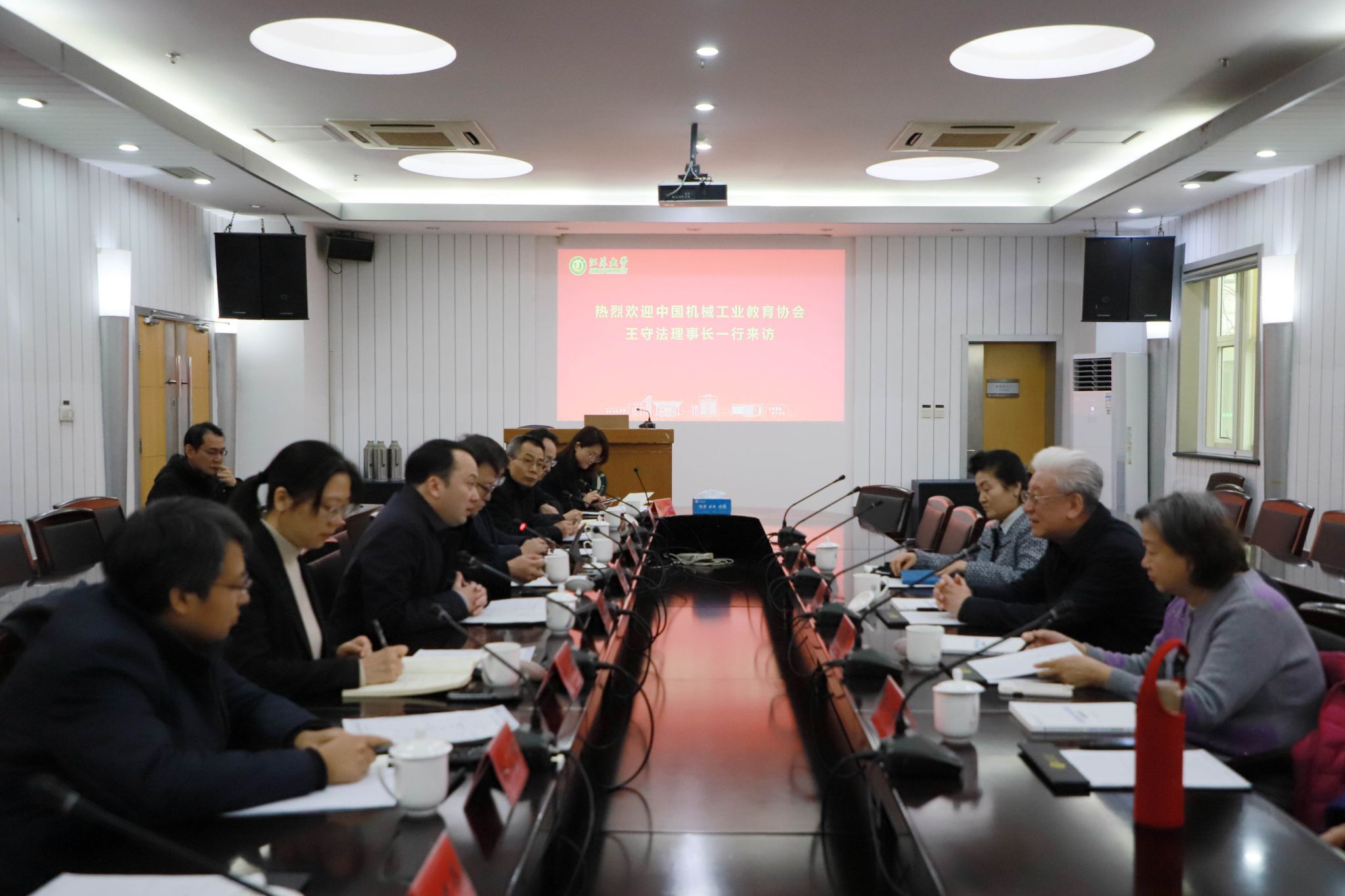 任旭东与王守法一行进行了座谈,相关职能部门分别汇报了学校在学科建设、人才培养、产教科融合等方面的工作。