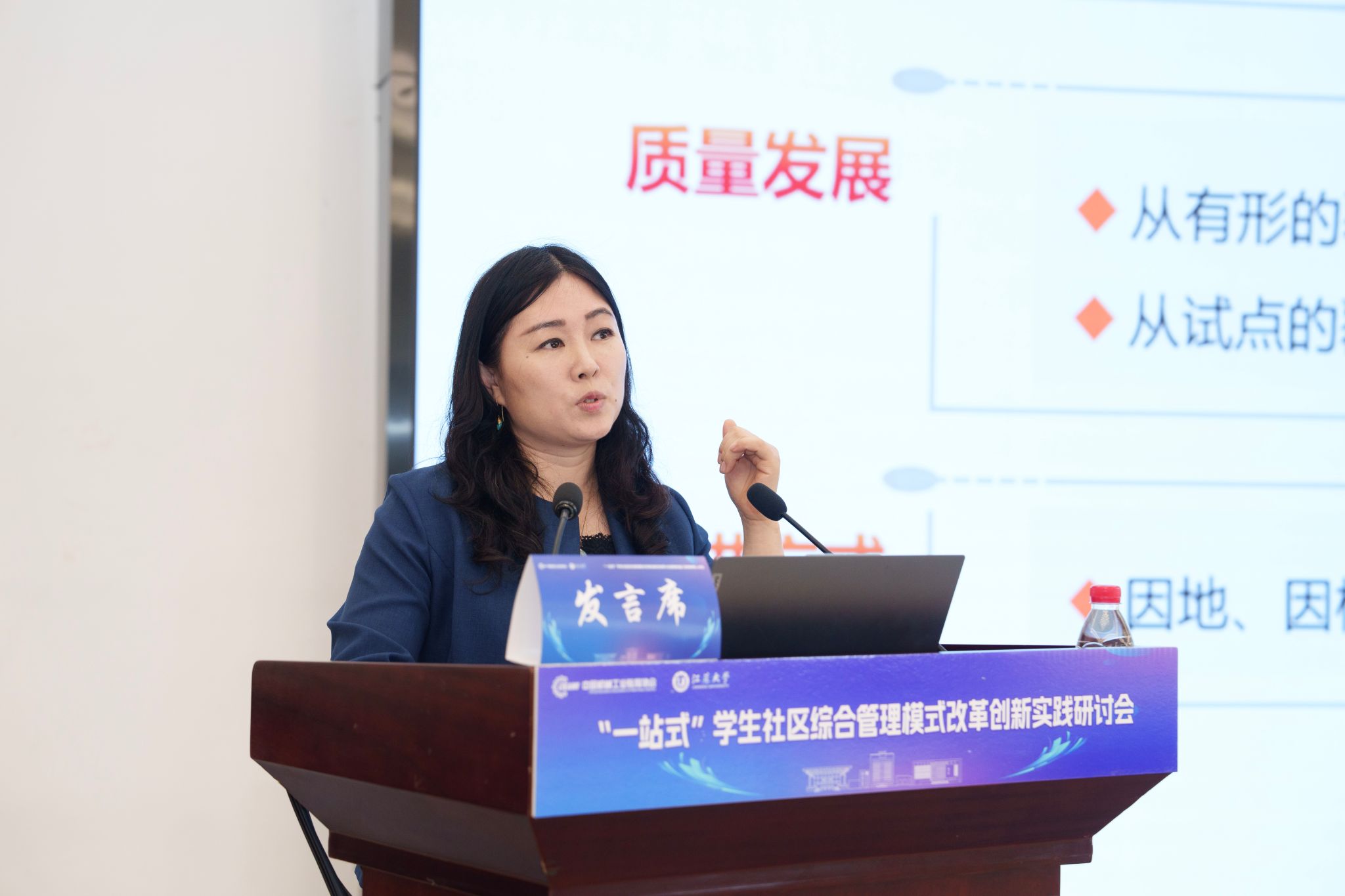 开幕式后,5位知名专家学者围绕“一站式”学生社区综合管理模式改革创新分别作主题报告,为推进“一站式”学生社区建设提供了宝贵参考。王慧敏系统阐述了全国高校思想政治工作网工作开展情况和数智赋能学生社区管理的创新应用与实践路径。苏州大学党委学生工作部部长董召勤立足高校“一站式”学生社区建设实践,针对共性难题提出了具有可操作性的解决方案。南京大学党委学生工作部副部长李兴华分享了“五个一”建设模式下构建师生成长共同体的创新经验。od体育全站(中国)有限公司党委学生工作部部长任泽中解读了“主治·共治·自治·智治”学生社区治理新模式的实践探索。金智教育研究院学生管理与服务中心主任谭利娟从社区育人视角,分享了高校数据应用建设的典型案例。