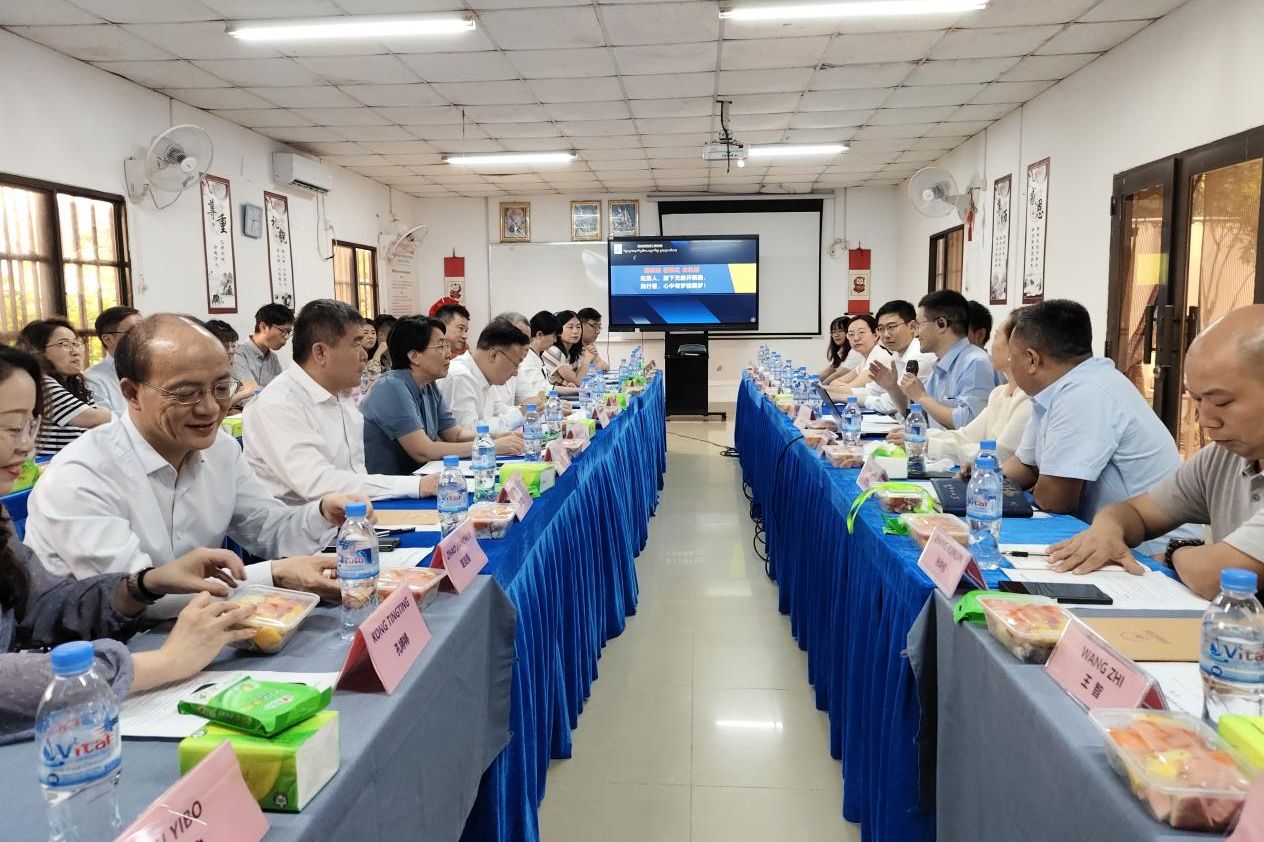 5月21日,江苏教育代表团访问西哈努克港工商学院和西哈努克经济特区,与园区中资企业座谈,听取“走出去”企业对当地技术技能人才的需求、出海办学工作的意见和建议。