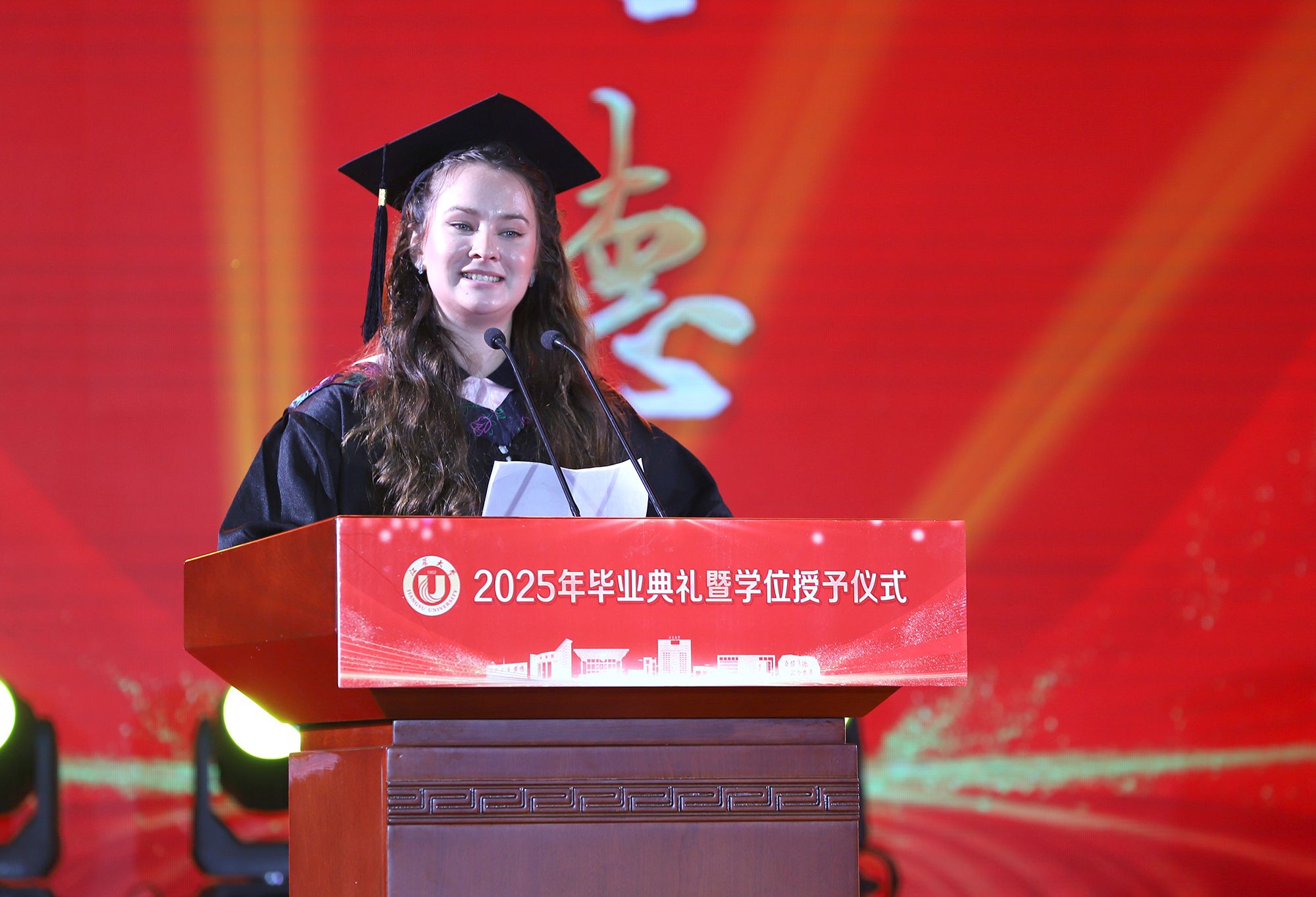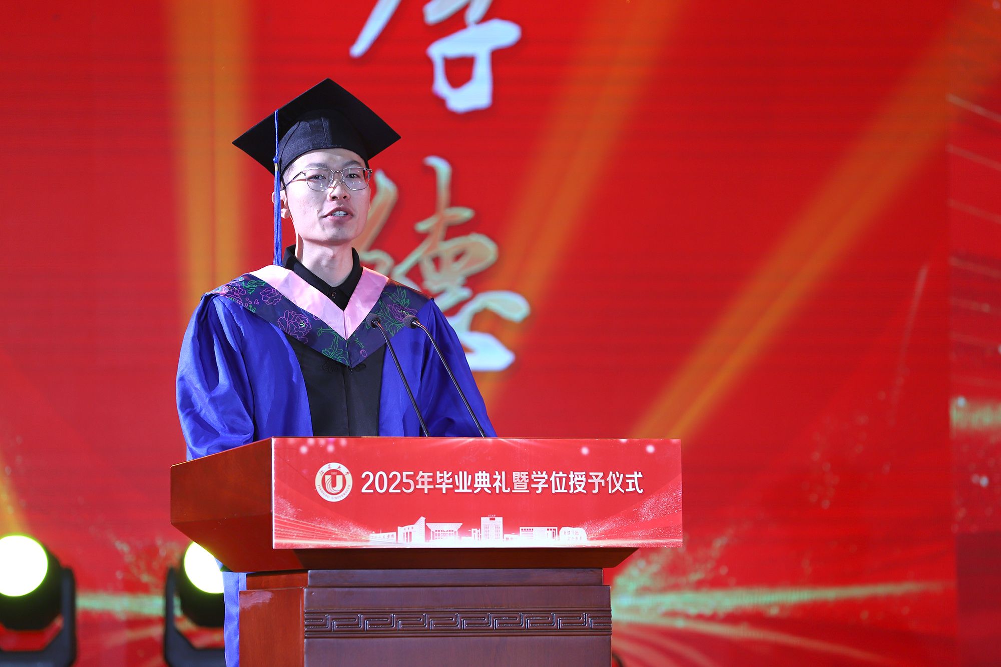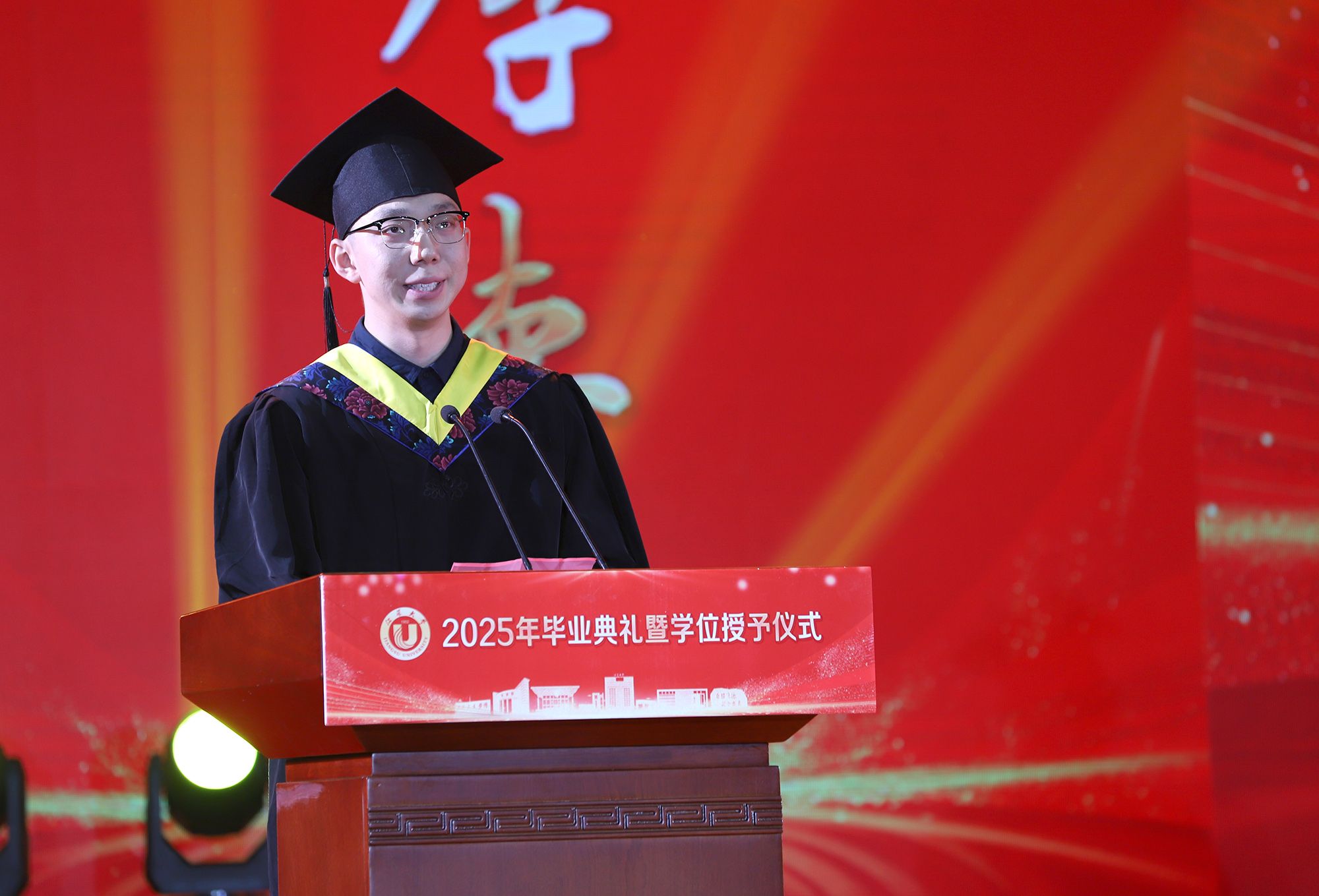 校长邢卫红发表题为《让热爱照见未来》的讲话,代表学校向全体毕业生致以热烈祝贺,向悉心关怀同学的师长、辛勤养育同学的父母以及默默支持大家成长的各界朋友,致以崇高的敬意和衷心的感谢。邢卫红说,大学更深层的意义,在于教会同学们以“热爱”为火种,照亮前路的漫长与未知。这份源自内心的热爱,已化作同学们成长路上的璀璨星光。每一位od体育全站(中国)有限公司学子奋斗的足迹、闪耀的成绩,共同汇聚成od体育全站(中国)有限公司校园最亮眼的青春图谱,照亮前行的每一步。邢卫红说,优秀没有标准答案,每一份热爱都定义着独特的精彩,每一次坚持都谱写着动人的篇章。她希望同学们因热爱而选择,在变革的时代中寻找内心的确定;因热爱而坚持,在平凡的岗位上成就非凡的业绩;因热爱而绽放,在生活的微光中积攒前行的力量。邢卫红希望同学们永远保持对生活的热忱,于细微处感受温暖美好,在热爱中拥抱天地辽阔。她祝愿大家带着od体育全站(中国)有限公司赋予的热爱与力量,勇敢奔赴山海,让热爱之光照见无比璀璨的未来。