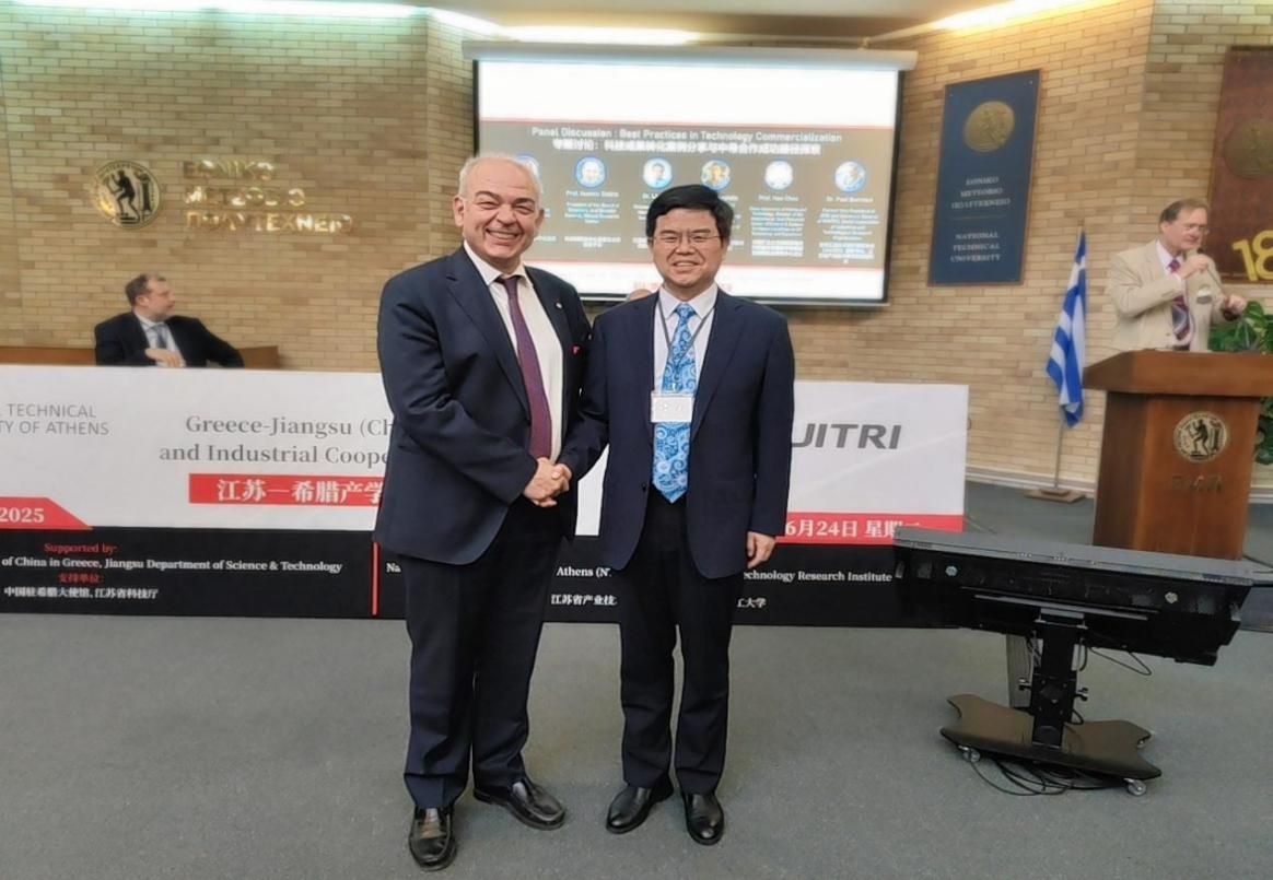 6月24日,代表团在希腊雅典国立技术大学参加“江苏—希腊产学研合作交流会”。江苏省委书记信长星、希腊阿提卡省省长尼科斯·哈扎利亚斯(Nikos Hardalias)、中国驻希腊大使方遒等出席会议,来自两国政府、高校、科研机构和企业的160余位代表参会。会议聚焦人工智能、绿色能源、海洋工程等前沿领域,深入探讨中希在科技创新与成果转化方面的合作潜力,积极拓展双方产学研融合发展的新路径。李洪波一行与雅典国立技术大学校长IOANNIS K. CHATJIGEORGIOU、校董事会理事Sergios Theodoridis对接“一带一路”智慧农业技术与装备相关合作,向希腊高新技术园区、高校院所及科技企业推介od体育全站(中国)有限公司技术成果,推动务实对接。代表团还与中国驻希腊大使馆教育参赞王瑾、亚里士多德大学代表TZOUVELEKAS MANOLIS对接了技术转移、学生流动项目合作。