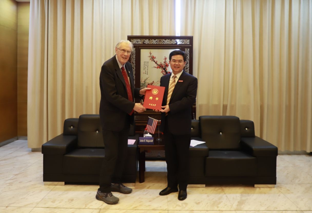7月7日,图灵奖获得者、中华人民共和国国际科学技术合作奖获得者、中国政府友谊奖获得者、中国科学院外籍院士、美国国家科学院院士、美国国家工程院院士、美国艺术与科学院院士约翰·爱德华·霍普克罗夫特教授到访我校,并与师生进行对话。