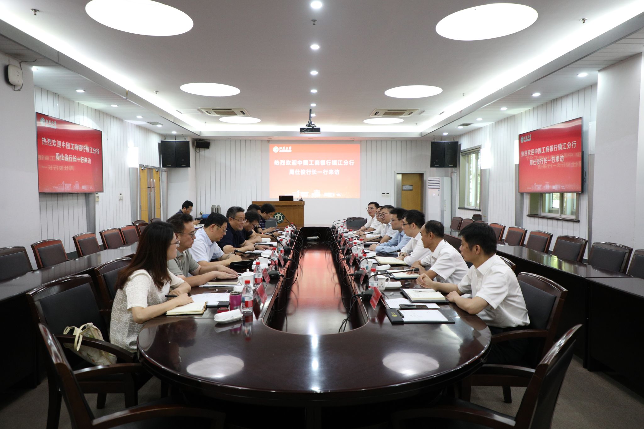 8月29日,中国工商银行镇江分行行长周仕俊率队来校交流,党委常委、副校长杨道建接待了周仕俊一行。