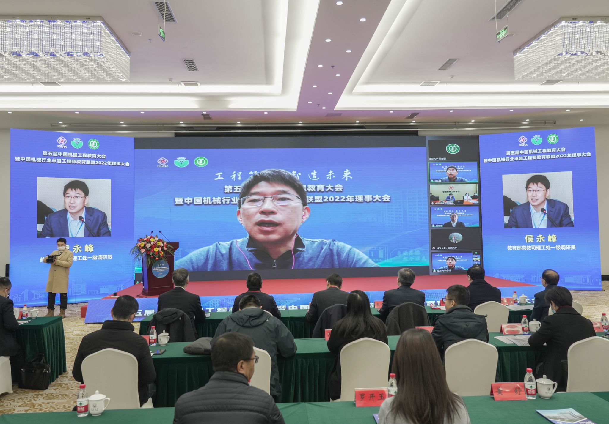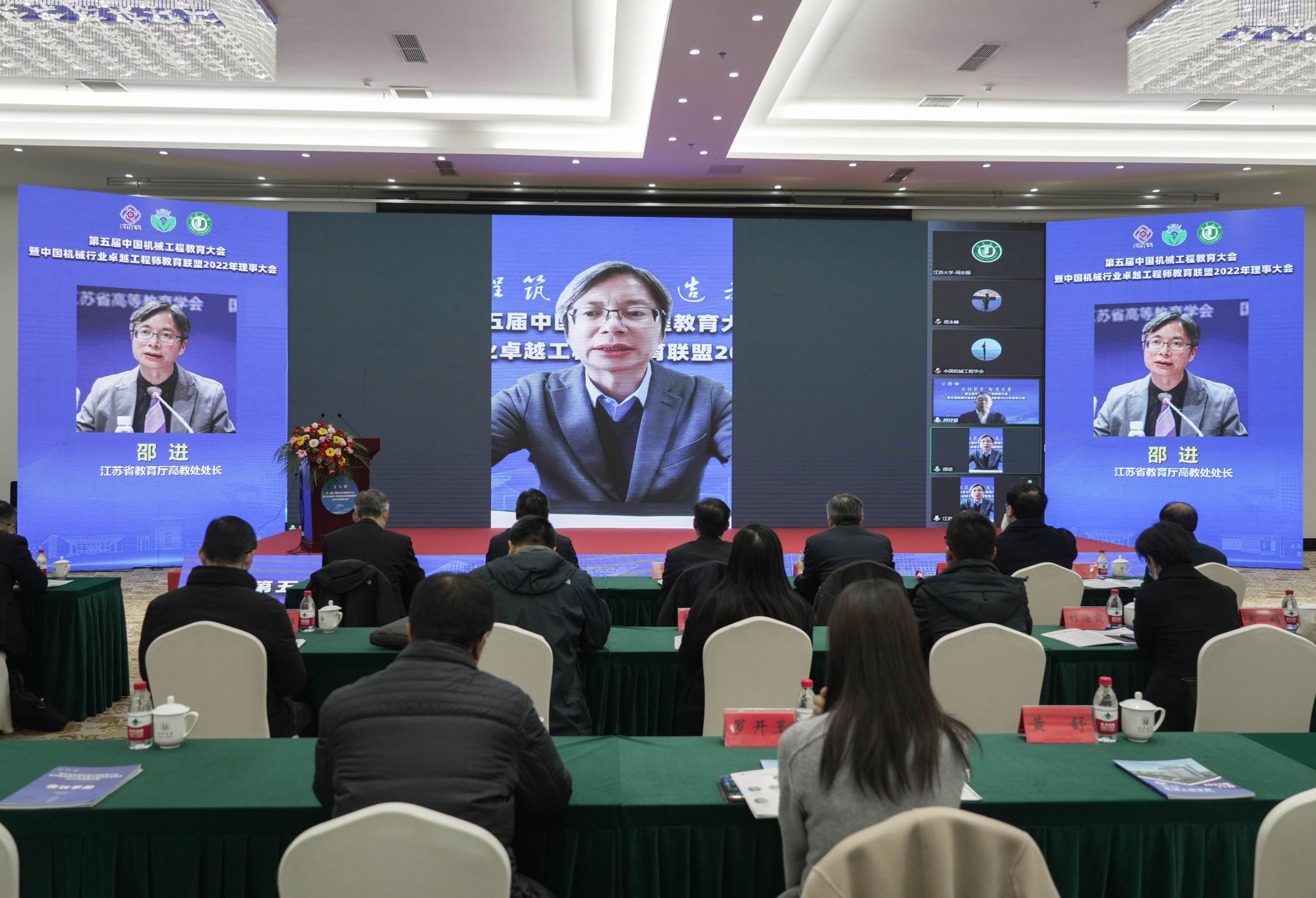 中国机械工程学会驻会副理事长陆大明,大连理工大学常务副校长、中国科学院院士贾振元,国机集团党委常委、副总经理、总工程师、中国工程院院士陈学东,教育部高教司理工处一级调研员侯永峰,中国科协组织人事部人才工作处处长宫飞,江苏省教育厅高教处处长邵进,教育部机械类教学指导委员会主任、东北大学原校长赵继,od体育全站(中国)有限公司党委书记袁寿其,扬州大学校长丁建宁,中国机械工程学会秘书长助理兼教育培训处处长王玲,中国机械工程学会专务罗平,各联盟理事单位的副理事长、常务理事、理事,全国各高校的领导、骨干教师和企业专家,以及od体育全站(中国)有限公司、扬州大学、江苏科技大学师生代表等线上线下参加会议。中国机械行业卓越工程师教育联盟秘书长何存富主持大会。