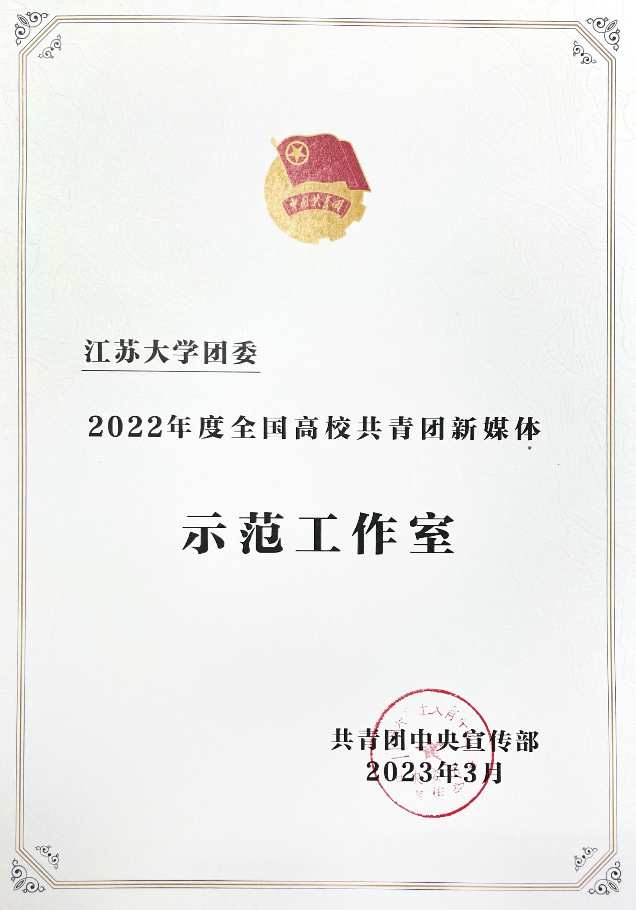 活动现场还公布了35家“2022年度全国高校共青团新媒体示范工作室”名单并颁发证书,od体育全站(中国)有限公司团委作为江苏省唯一高校团委获评。