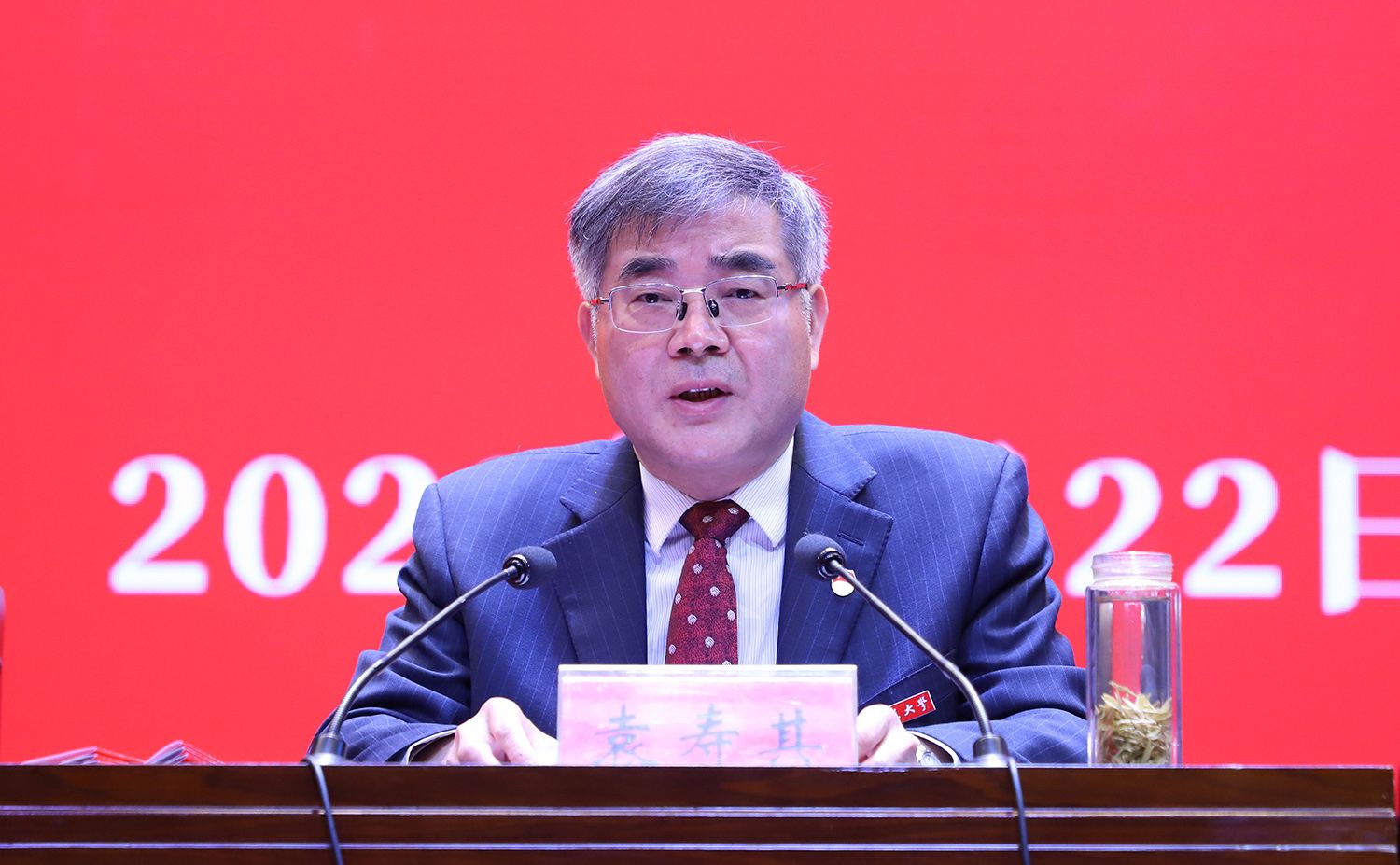 校党委书记、校党的建设工作领导小组组长袁寿其在会上讲话,他就进一步做好全面从严治党工作强调了三点意见:一是要提高思想认识,深刻把握全面从严治党的新形势新要求。要深刻领会新时代十年全面从严治党的历史性、开创性成就;要深刻把握全面从严治党的新精神新要求;要深刻认识学校全面从严治党的新任务新挑战。二是要深入学习贯彻党的二十大精神,奋力开创全面从严治党新局面。要坚持以党的政治建设为统领;要健全全面从严治党体系;要增强党组织政治功能和组织功能;要持之以恒正风肃纪反腐。三是要坚决扛起政治责任,推动全面从严治党向纵深发展。要压紧压实主体责任;要建立健全监督体系;要锻造高素质纪检监察队伍。袁寿其强调,新时代赋予新使命,新征程要有新作为。要坚持以习近平新时代中国特色社会主义思想为指导,深入贯彻落实党的二十大精神和习近平总书记重要批示精神,永葆自我革命精神,把严的基调、严的措施、严的氛围长期坚持下去,以全面从严管党治党新成效引领保障事业高质量发展,以实际行动迎接学校第五次党代会胜利召开。