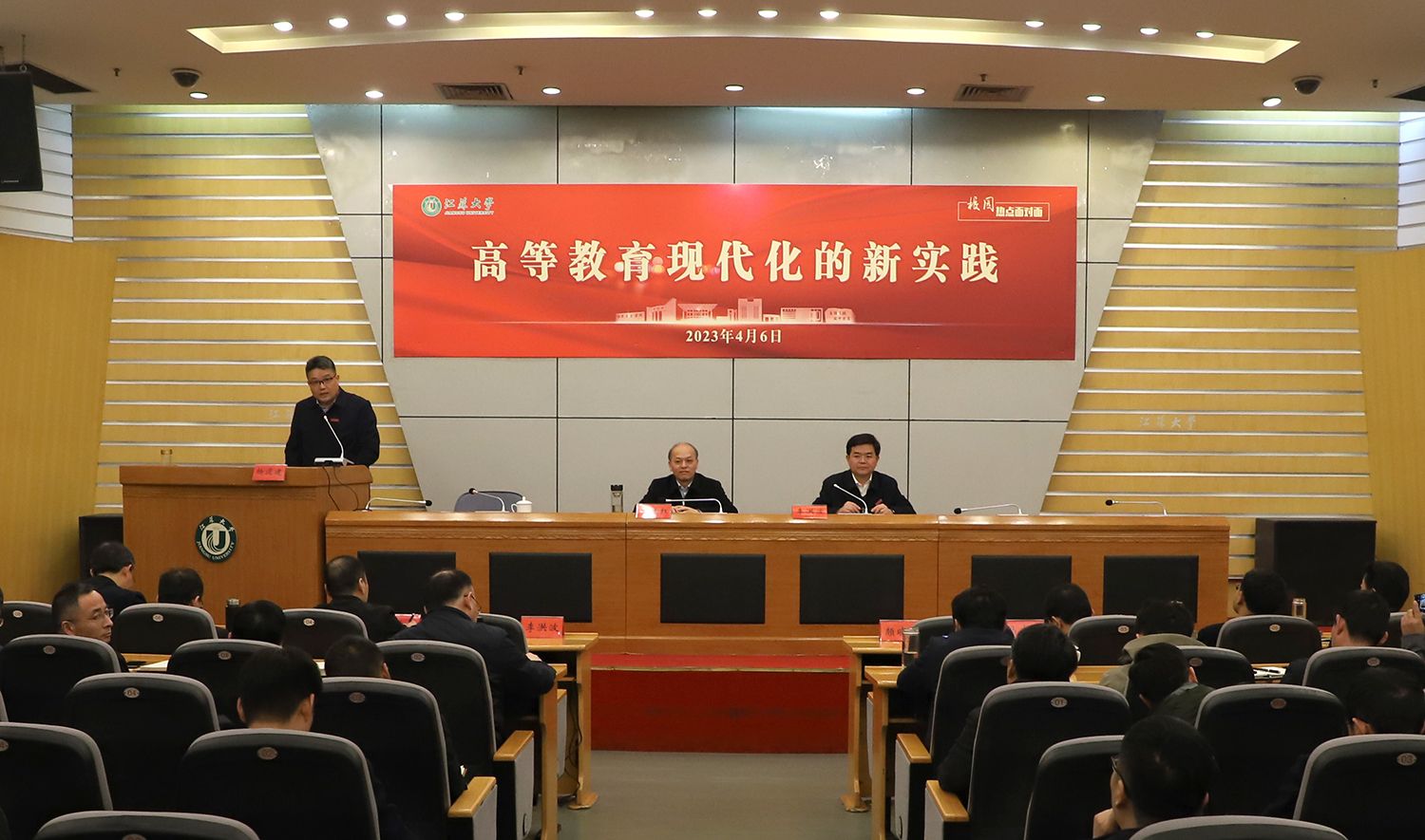 4月6日,校长颜晓红、校党委副书记李洪波走进校园热点面对面之“高等教育现代化的新实践”活动现场,与老师们面对面交流,围绕如何夯实大学的归依,探索行业特色地方高校的高等教育现代化特色发展之路,在中国科教体系中传递od体育全站(中国)有限公司模式、od体育全站(中国)有限公司方案进行现场释疑解惑。校党委常委、宣传部部长杨道建主持活动。