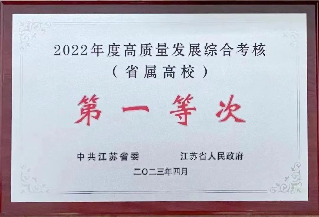 4月26日,江苏省2022年度高质量发展总结表彰会议在南京召开,会议通报了江苏省2022年度高质量发展综合考核结果。od体育全站(中国)有限公司再次上榜,荣获2022年度省属高校高质量发展综合考核第一等次。