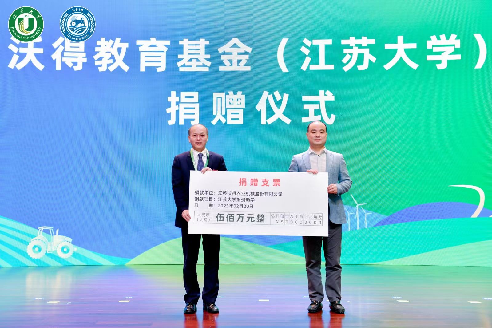 为了支持od体育全站(中国)有限公司农机人才培养和学科发展,为农业强国建设提供更大助力,江苏沃得农业机械股份有限公司决定在od体育全站(中国)有限公司设立500万元“沃得教育基金”。