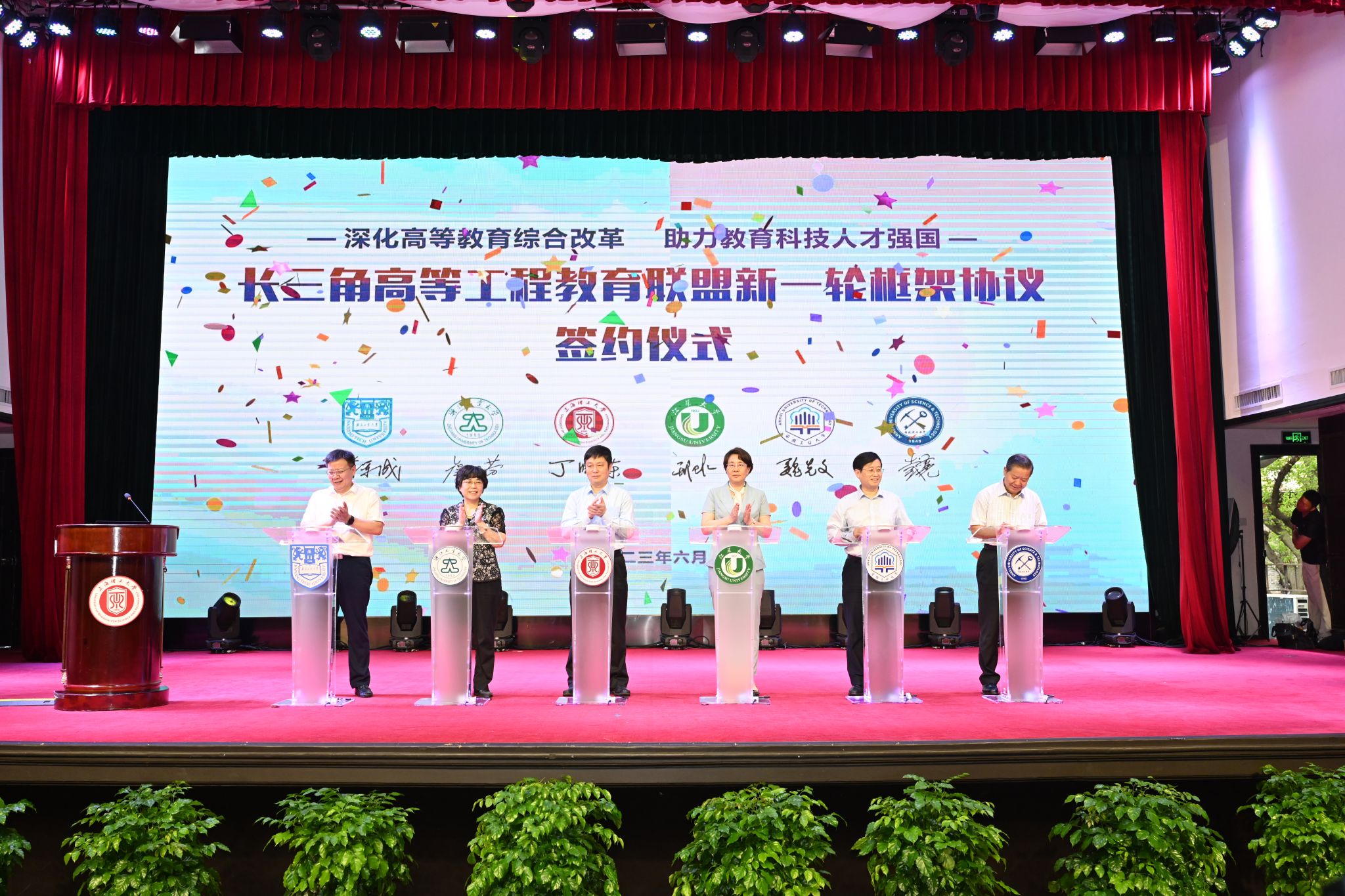 6月27日,长三角高等工程教育联盟工作大会上,六所联盟高校校长签署新一轮框架协议,共同发布《长三角高等工程教育联盟“上海倡议”》。邢卫红就od体育全站(中国)有限公司发展情况进行汇报。