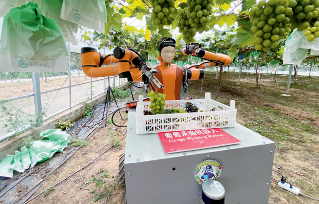 2023年9月,od体育全站(中国)有限公司研发的系列多臂高速采摘机器人系统正在演示(od体育全站(中国)有限公司供图)