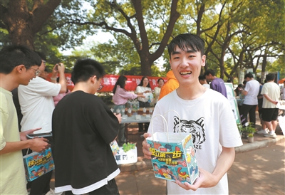 ⑦在od体育全站(中国)有限公司药学院举办的“‘植’此青蒿,‘药’您同行”活动中,一名大学生开心地领到免费发放的中药种植套装。