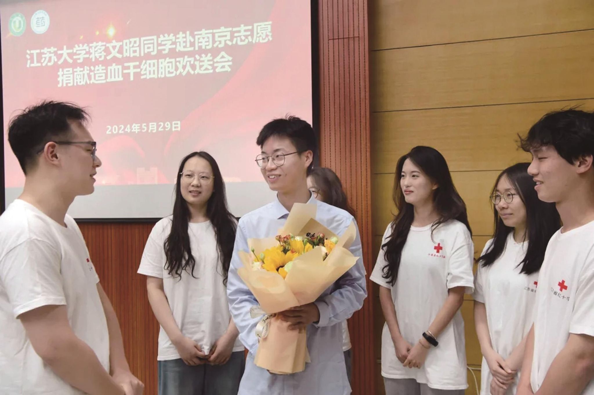 “今年3月22日,一个来自湖北江汉的电话打给了我,她用熟悉的家乡话告诉我,我匹配上了一个白血病患者,问我愿不愿意捐献。”蒋文昭第一时间表示“非常乐意”,并告知对方自己在镇江上学,相关信息还要转到江苏来。