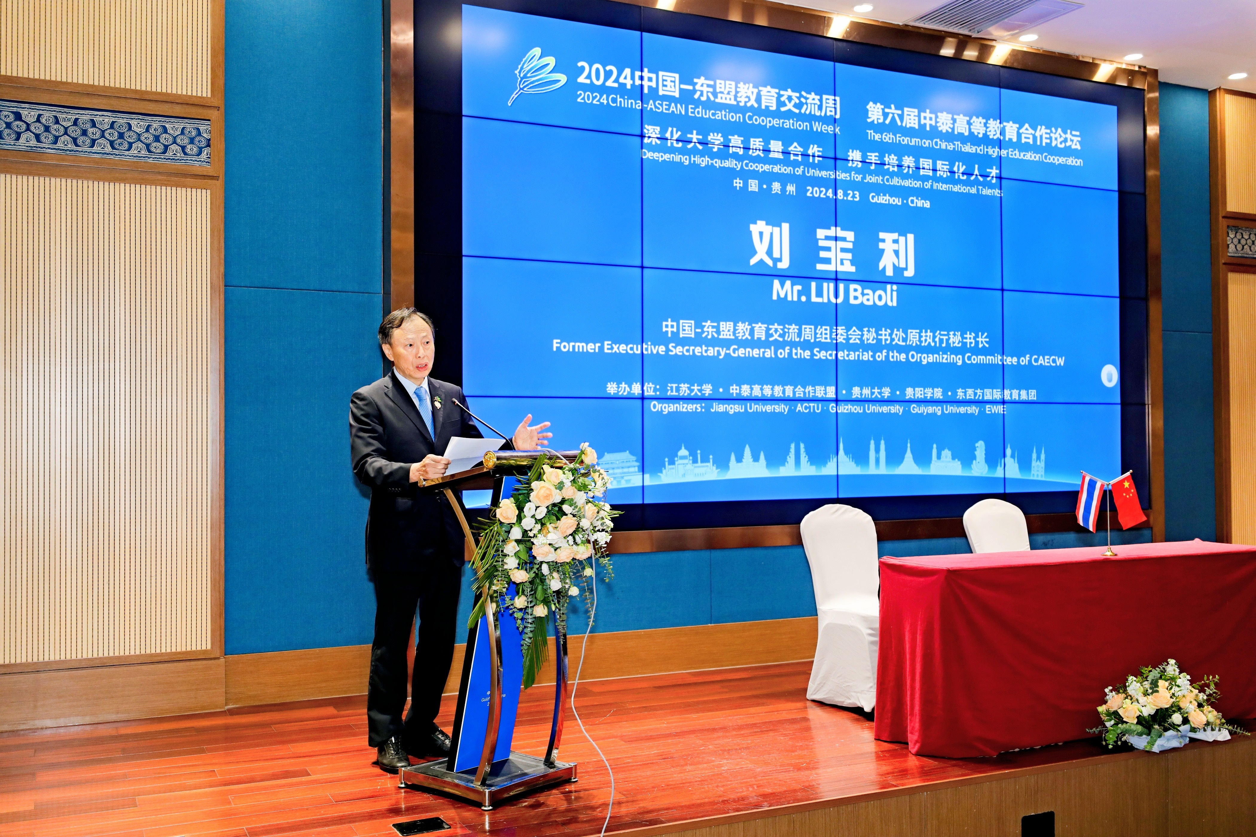 作为2024中国—东盟教育交流周开幕期活动之一,8月23日,第六届中泰高等教育合作论坛在贵阳举行。来自中泰两国的政府官员、教育界代表、高校校长、青年学生等近200人齐聚一堂,共同探讨中泰高等教育领域的合作与交流。