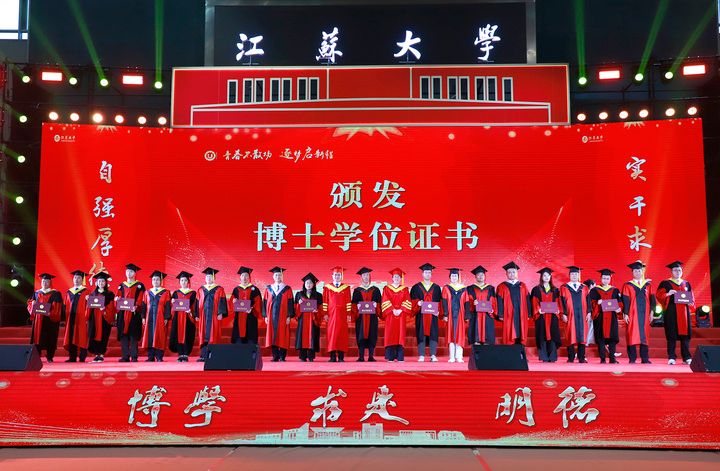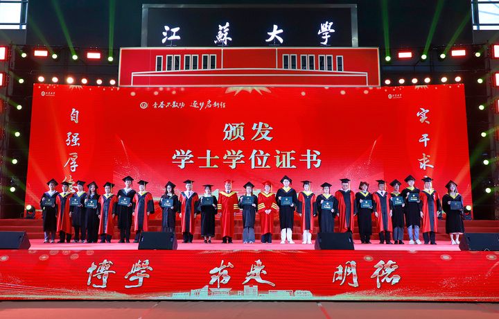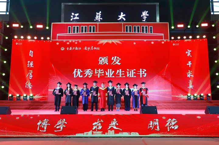上午10时,2025届博士生、硕士生、本科生代表依次登上主席台。学校领导及党委常委为他们一一颁发学位证书、扶正流苏。od体育全站(中国)有限公司党委书记李洪波为优秀毕业生代表颁发荣誉证书。