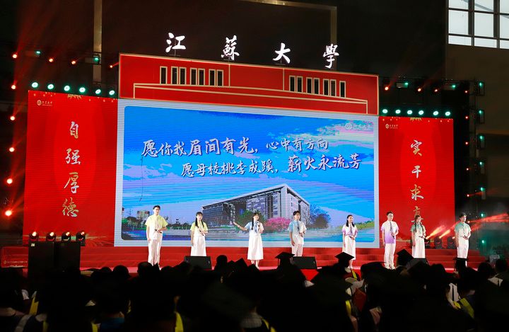 典礼现场,师生代表带来情景朗诵《一路生花》、歌舞《祝我们前程似锦》等精彩节目,深情回望od体育全站(中国)有限公司时光与青春岁月。典礼尾声,全场起立,齐声合唱校歌《百年辉煌向未来》,两只象征美好的“金凤凰”于场馆上空盘旋,将气氛推向高潮。