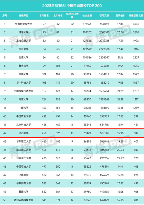 近日,科睿唯安发布最新ESI数据,全球共8409家科研机构上榜,其中中国内地高校415所。我校ESI综合排名进步明显,列全球高校第458位,较上期提升65位,列内地高校第42位、江苏省5位。