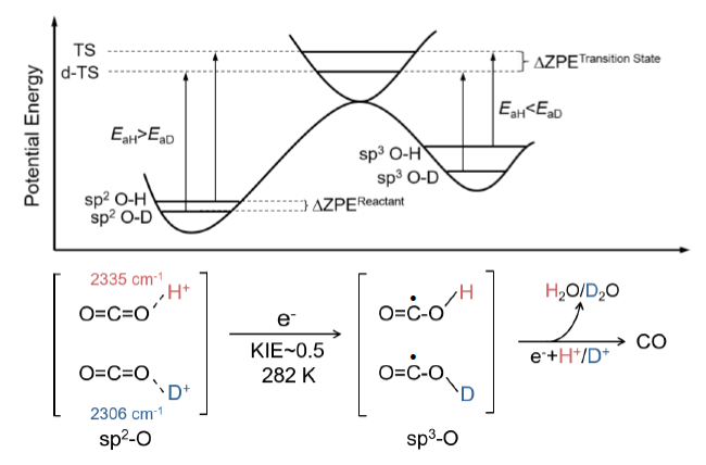 近日,我校化学化工学院绿色化学与化工技术创新团队的最新研究论文“Elucidating protonation pathways in CO2 photoreduction using the kinetic isotope effect” 在自然科学领域顶级期刊Nature Communications (IF:17.69)上在线发表。od体育全站(中国)有限公司为第一完成单位,博士生尹士康为第一作者,闫研教授和霍鹏伟教授为通讯作者。